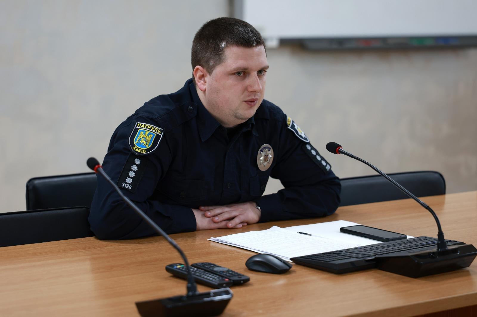 Цього разу другокурсники вишу поспілкувалися зі старшим інспектором відділу розшуку та опрацювання матеріалів ДТП Управління патрульної поліції Львівщини Дмитром Боднарем.