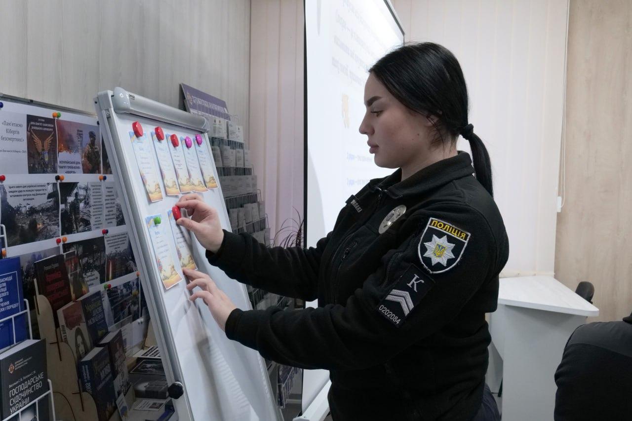 Бібліотекарка Ірина Конєва розповіла про 242 дні оборони Донецького аеропорту та презентувала стенд «Пам’ятаємо Кіборгів безсмертних», що став основою для подальшого творчого осмислення героїзму.