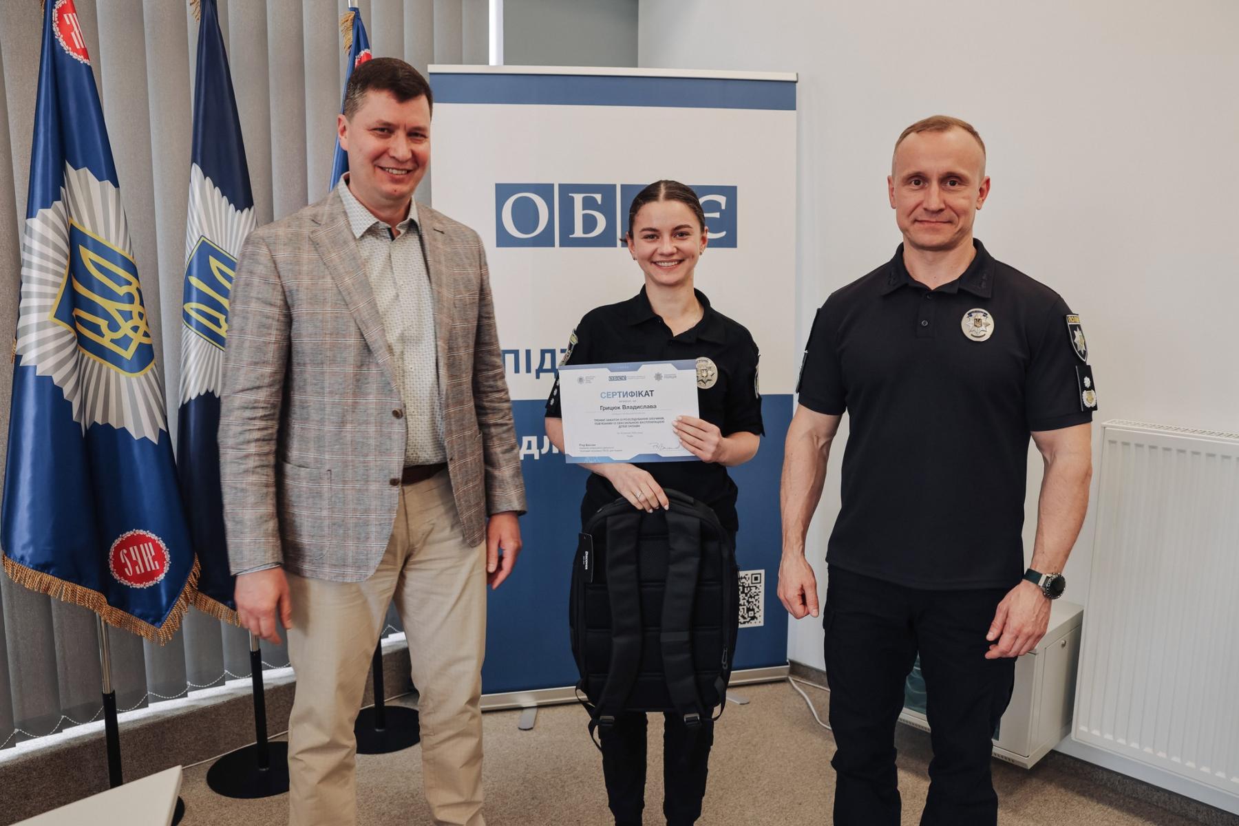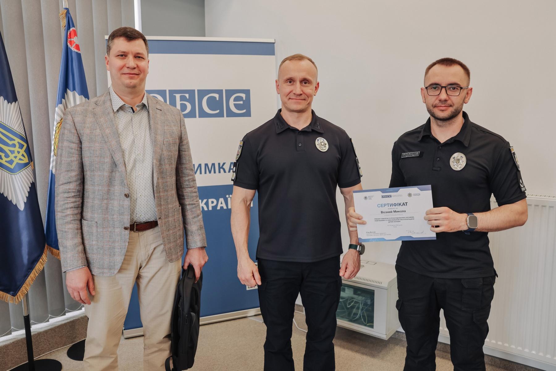 Після завершення навчання усі учасники отримали сертифікати від організаторів. Їх вручили заступник Голови Національної поліції — начальник кримінальної поліції, генерал поліції третього рангу Андрій Нєбитов та старший менеджер проєктів компоненту “Безпека людини” програми підтримки ОБСЄ для України Сергій Гриненко.