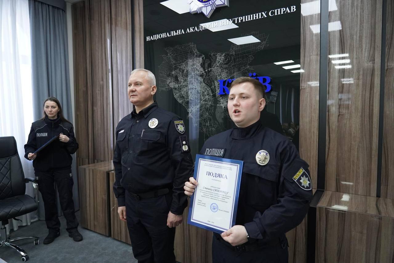 За активну громадянську позицію, сумлінне виконання службових обов’язків, ініціативність, мужність, професіоналізм і рішучість, виявлені під час затримання правопорушника, подяку Національної академії внутрішніх справ оголошено слухачам центру.