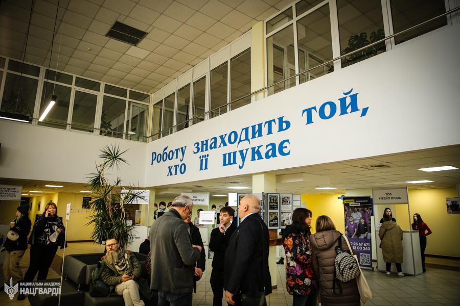 Представники Національної академії НГУ презентували актуальні можливості для працевлаштування та навчання, розповіли про наявні вакансії, програми підготовки офіцерів, умови вступу та перспективи професійного розвитку в лавах Національної гвардії України. Усі охочі мали можливість поспілкуватися з представниками Академії та отримати відповіді на свої запитання.