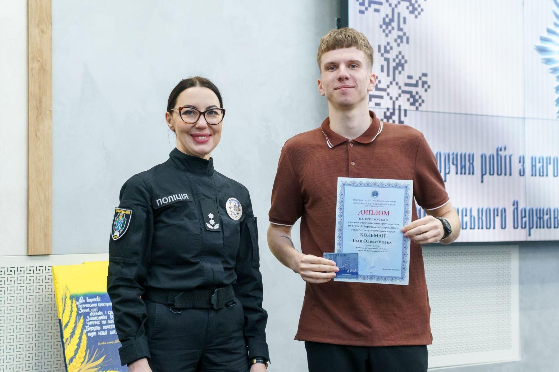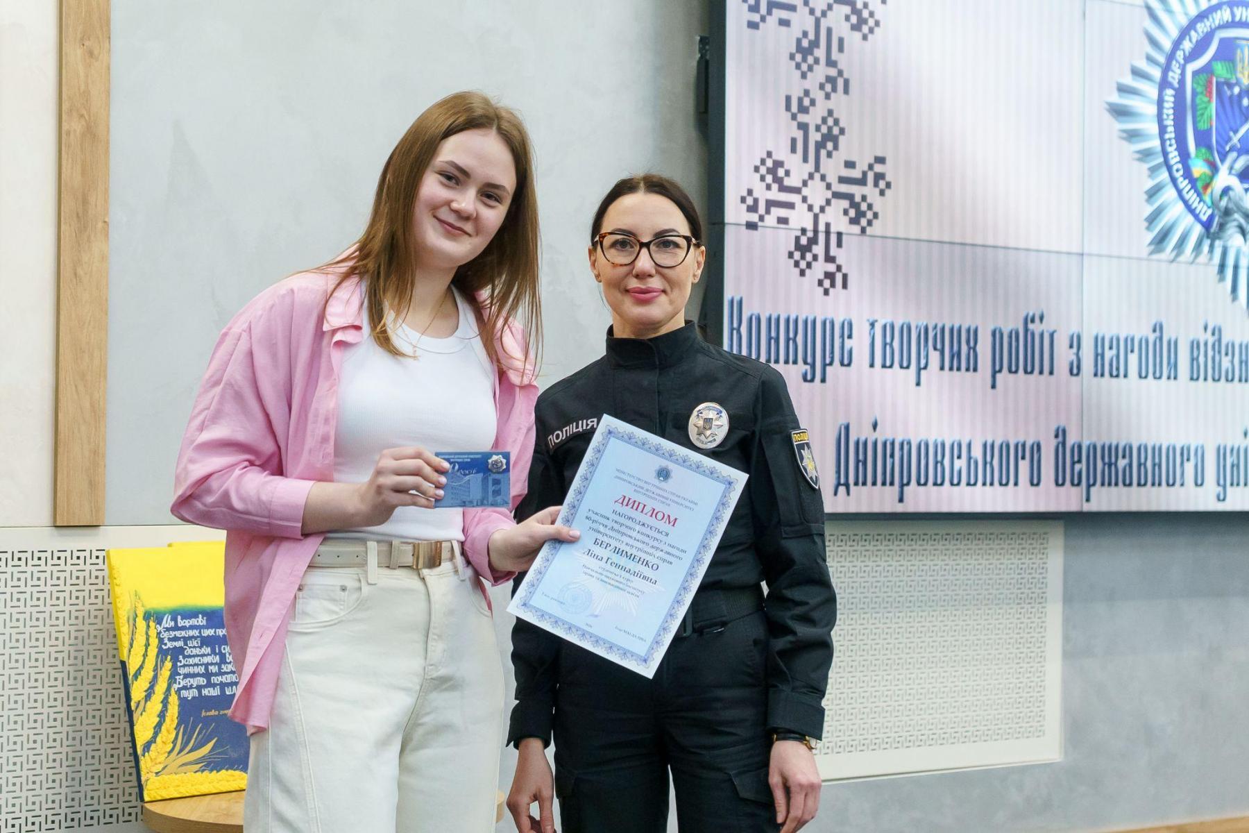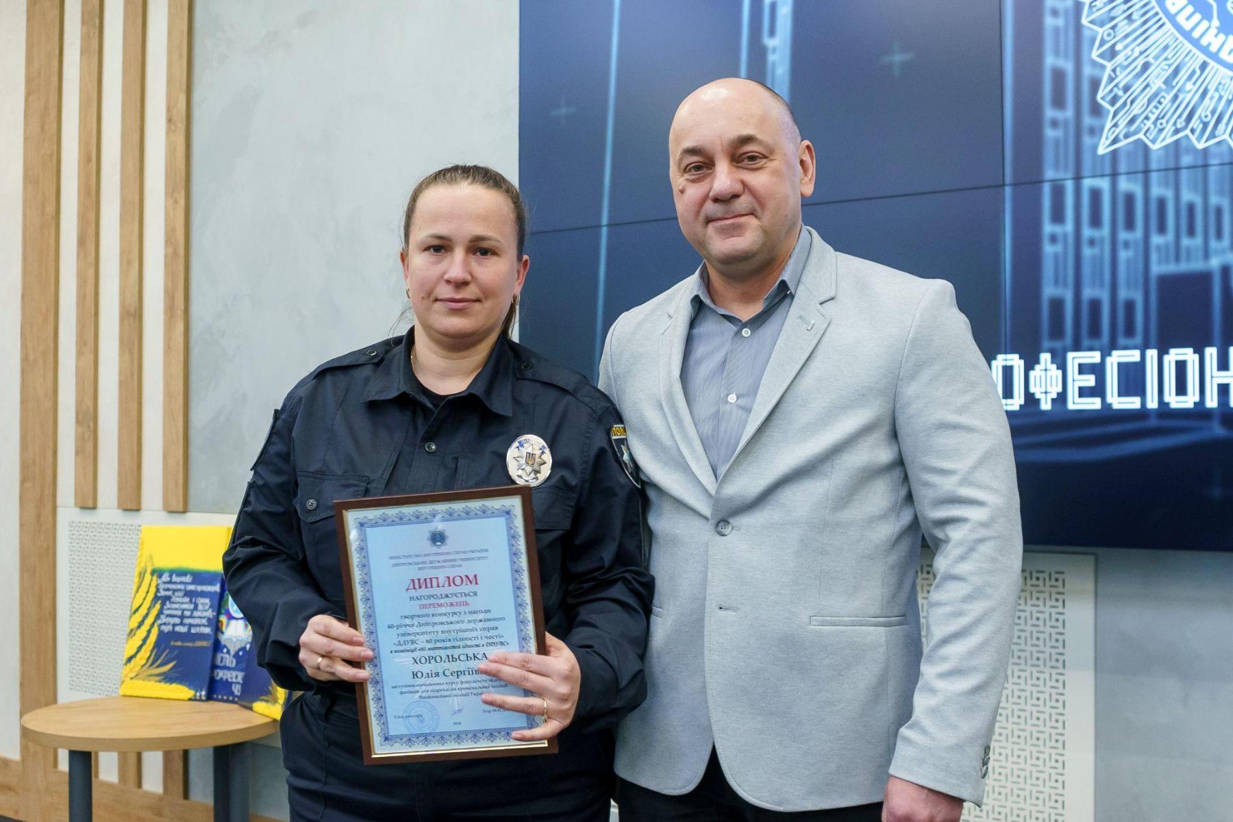 Під час підсумкового заходу дипломами за творчі здобутки в номінаціях поетичної творчості, есеїстики, образотворчого мистецтва та створення віршованих гасел відзначено курсантів і студентів ДДУВС. Також за поетичну творчість та художню фотографію відзначено офіцерку факультету підготовки фахівців для підрозділів кримінальної поліції НПУ, старшу лейтенантку поліції Юлію Хорольську.