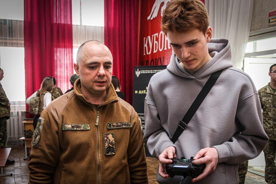Під час презентації школярам пропонували практичні активності. Учні приміряли екіпірування, спробували політати у VR на різних дронах, а також отримати консультацію щодо вибору фаху для навчання в Академії.