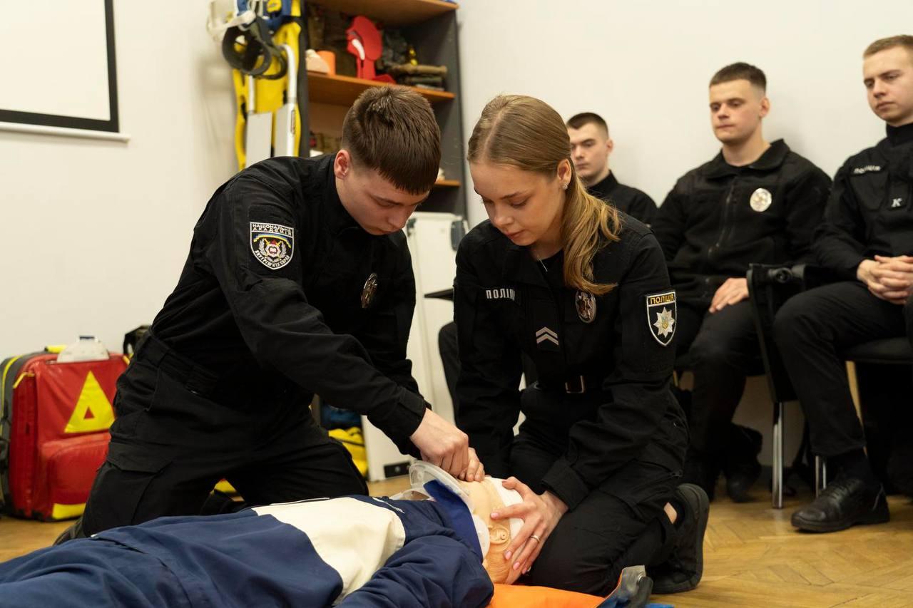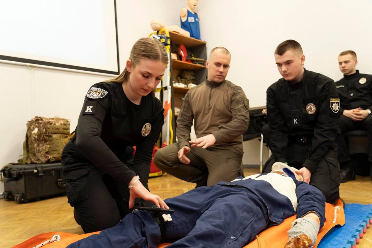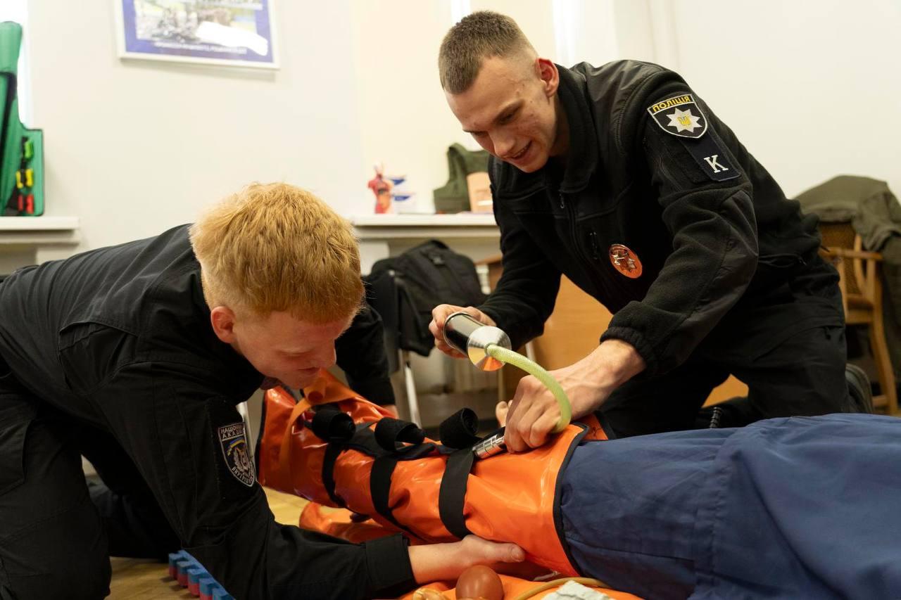Також здобувачі поглибили знання із застосування індивідуальної аптечки поліцейського.