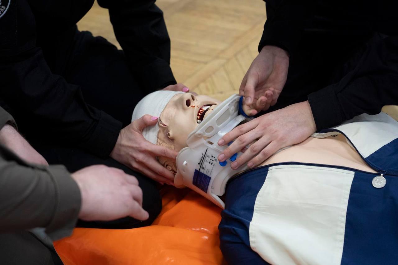 Здобувачі вищої освіти відпрацювали практичні навички допомоги постраждалим у різних ситуаціях та алгоритми дій у межах майстер-класу з використанням сучасних протоколів тактичної медицини.