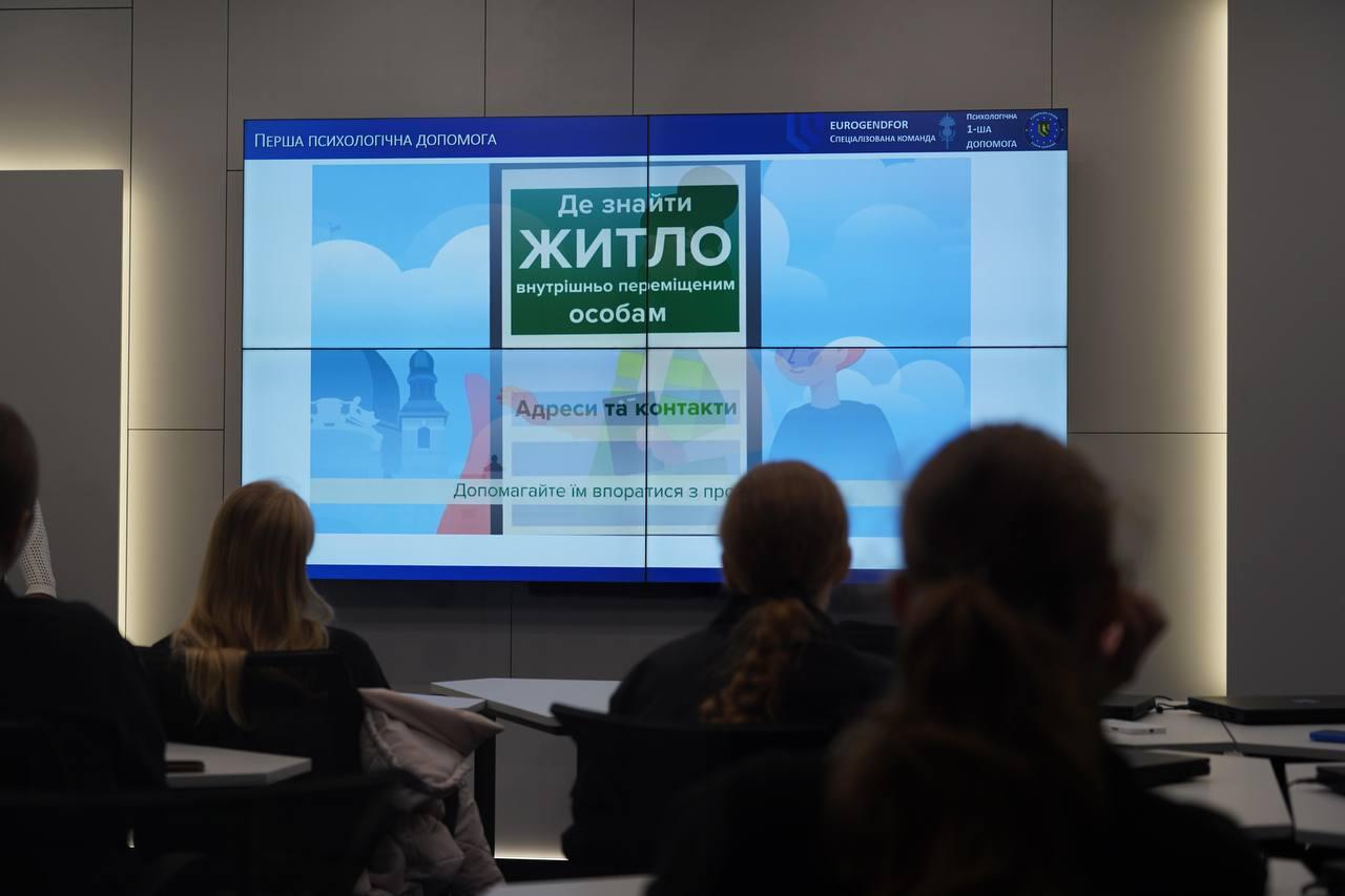 Під час візиту відбулася презентація тренінгу з надання першої психологічної допомоги, який провели викладачі кафедри психології. Програма передбачала теоретичний блок і практичні вправи, демонстрацію алгоритмів дій у кризових ситуаціях, моделювання реальних сценаріїв та відпрацювання комунікаційних технік взаємодії з особами в стресових або травматичних станах.