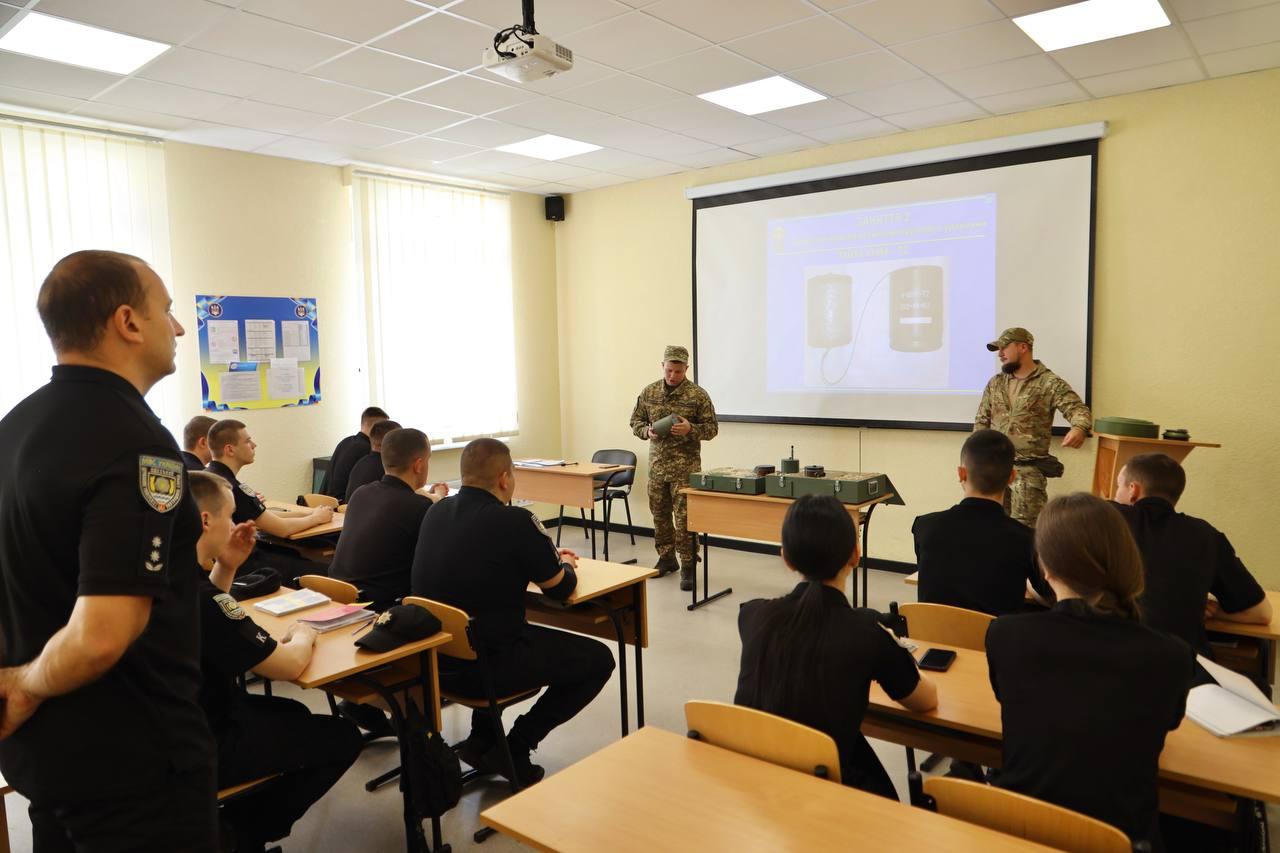 Для курсантів факультету підготовки фахівців для підрозділів превентивної діяльності НПУ ОДУВС старшим викладачем кафедри тактико-спеціальної та спеціальної фізичної підготовки підполковником поліції Євгенієм Проскурнею організовано бінарне заняття з навчальної дисципліни "Тактико-спеціальна підготовка" на тему "Класифікація та тактико-технічні характеристики вибухонебезпечних предметів".