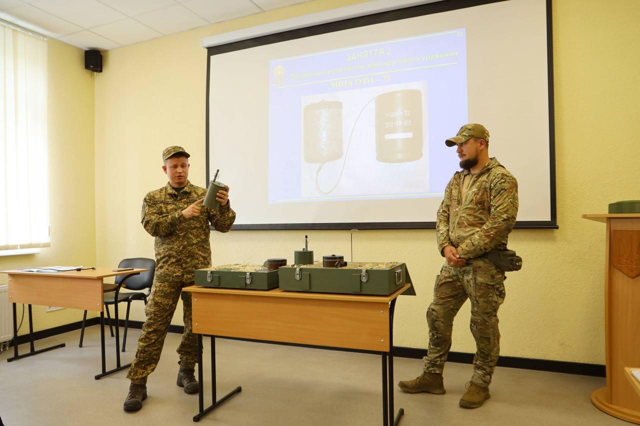 Курсанти мали можливість наглядно ознайомитися з сучасними модифікаціями вибухових пристроїв, інженерних боєприпасів, протипіхотних мін та касетних елементів.