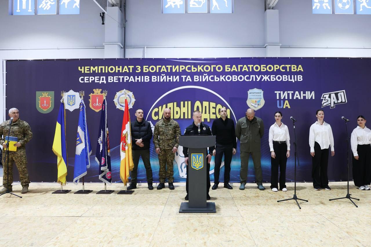 За ініціативи очільника Одеської міської військової адміністрації Сергія Лисака, Департаментом у справах ветеранів, за підтримки Одеської міської ради спільно з Одеським державним університетом внутрішніх справ, організовано та проведено Чемпіонат з багатоборства серед ветеранів війни та військовослужбовців України.