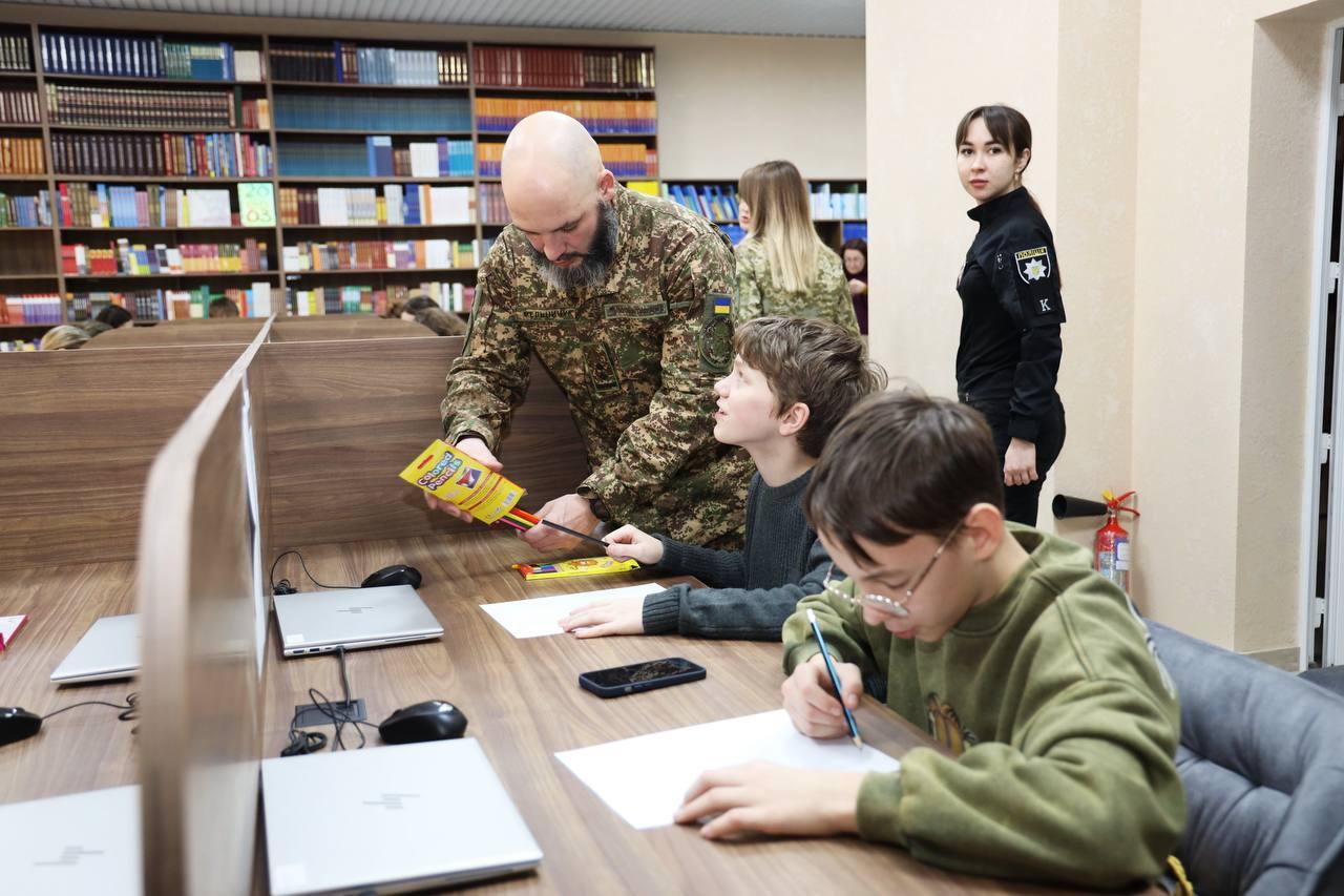 Вони поспілкувалися з учнями та отримали дитячі малюнки, які будуть передані бійцям на фронт як символ підтримки, вдячності та віри в перемогу.