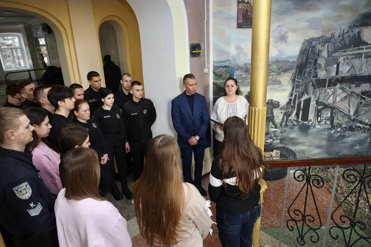 Про події оборони Міжнародного аеропорту «Донецьк» імені Сергія Прокоф’єва здобувачам освіти ОДУВС розповіли провідний фахівець відділу соціально-гуманітарної роботи Інна Євшина спільно зі старшим викладачем кафедри кримінально-правових дисциплін, учасником АТО Сергієм Саінчиним. Вони нагадали, що оборона летовища стала символом незламності та мужності українських військових, добровольців, медиків і волонтерів. Запеклі бої за аеропорт тривали 242 дні, упродовж яких майже всі його будівлі були зруйновані.