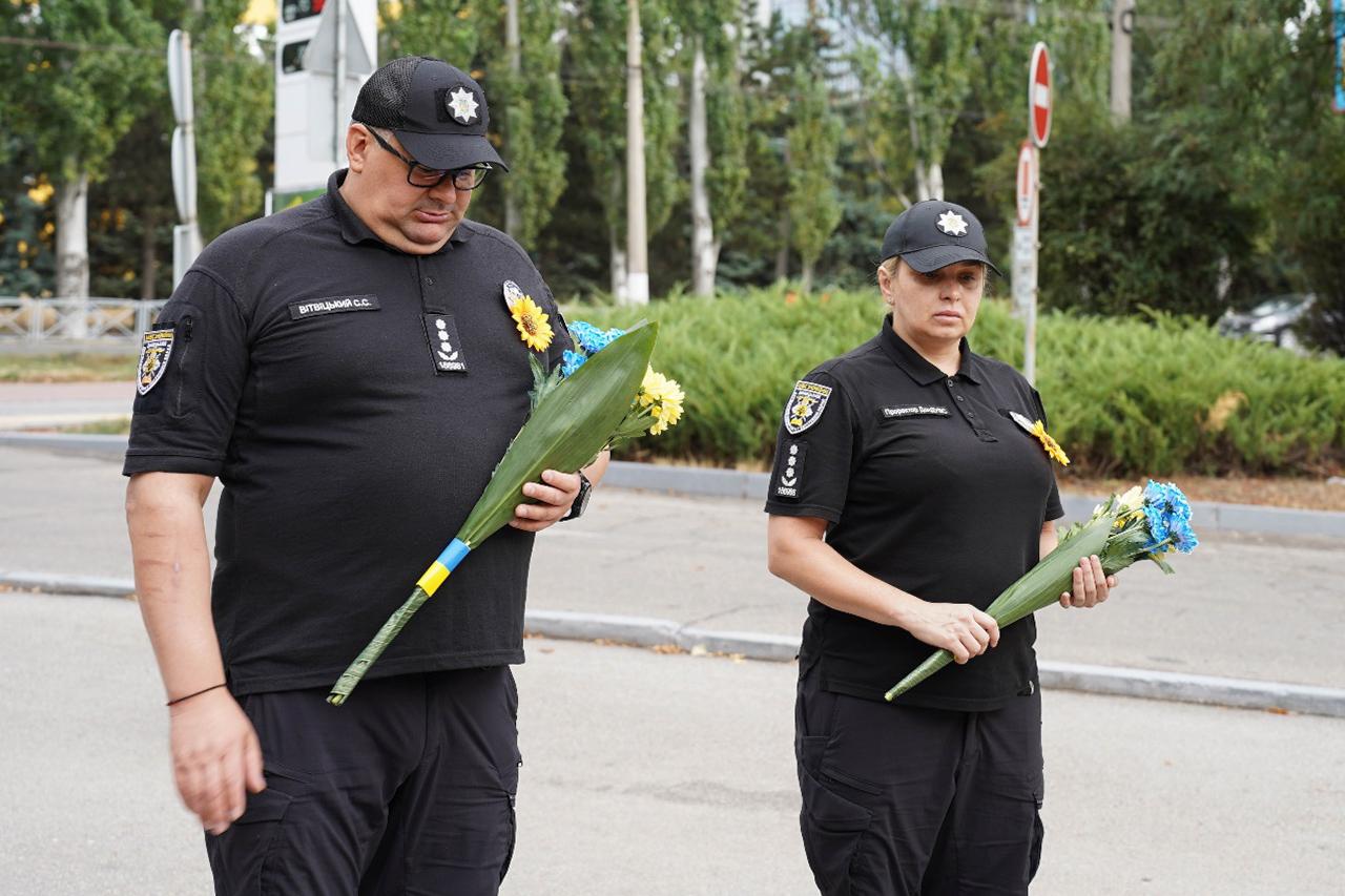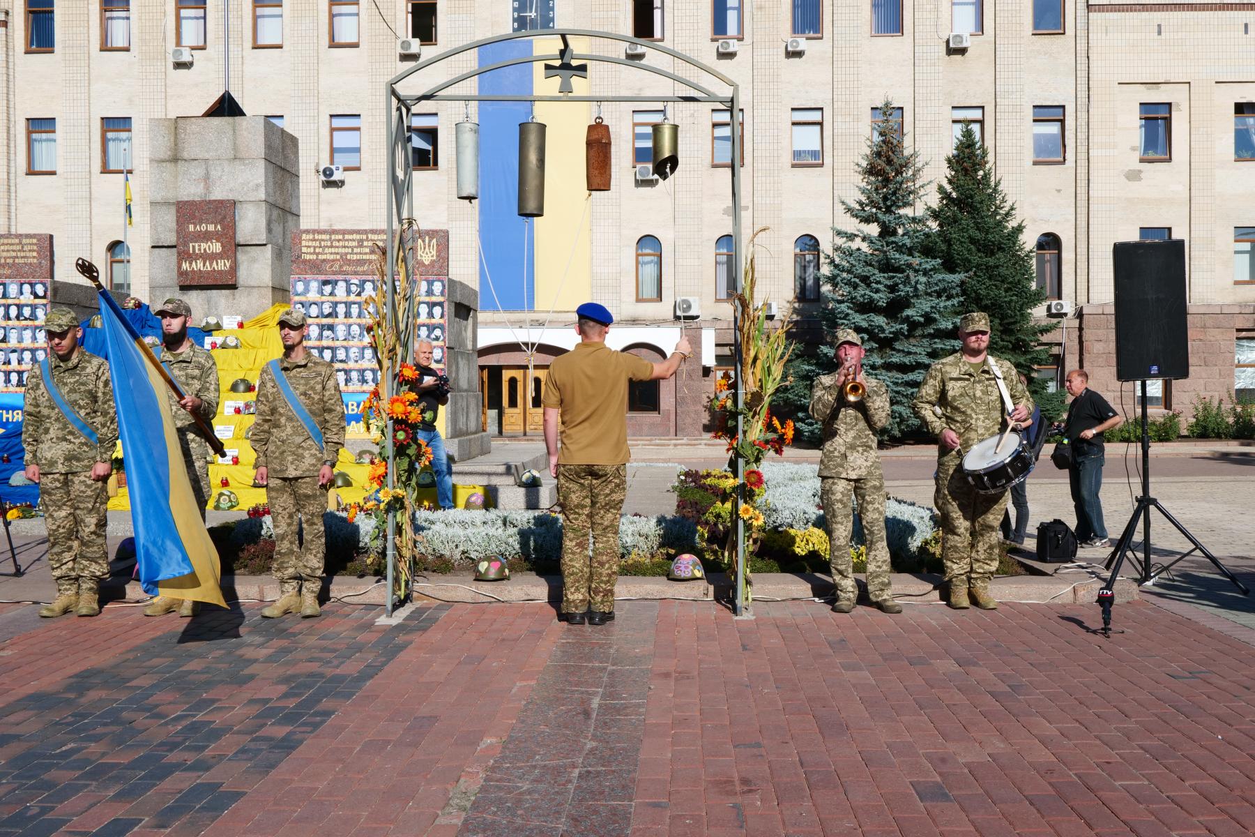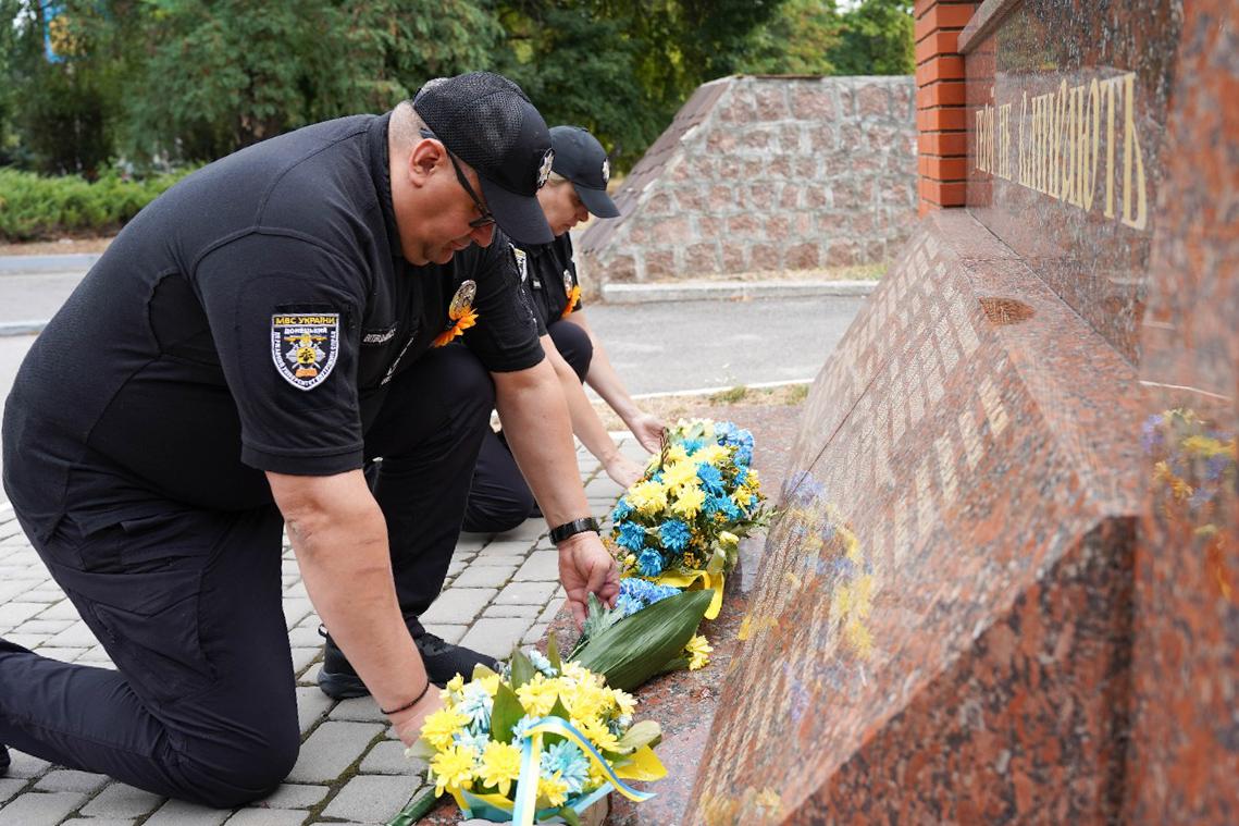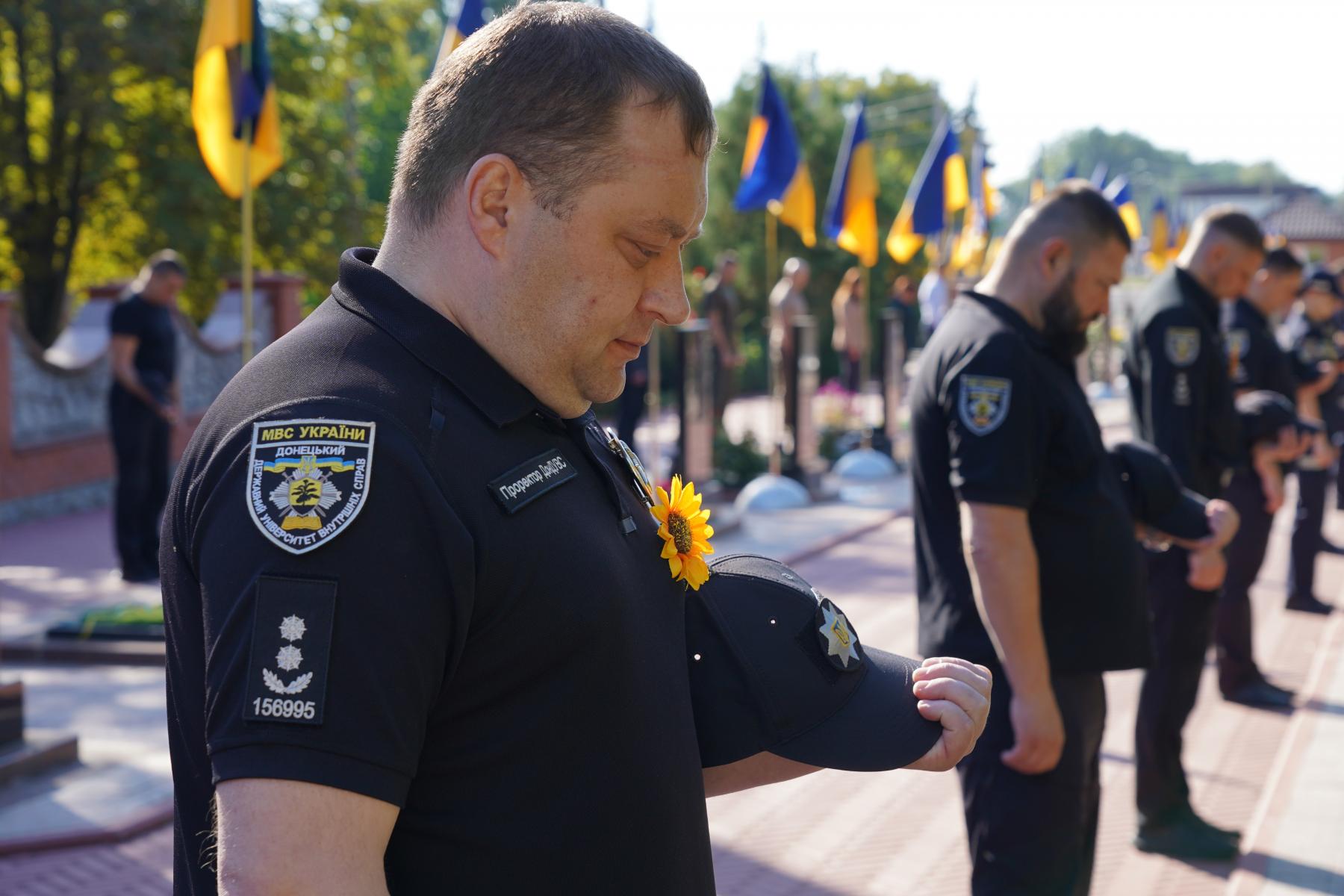 На плацу Донецького державного університету внутрішніх справ під час ранкового шикування представники постійного та перемінного складу університету разом із ректором Сергієм Вітвіцьким виконали Гімн України, схилили голови у хвилині мовчання та поклали квіти до пам’ятного знака «Героям України».