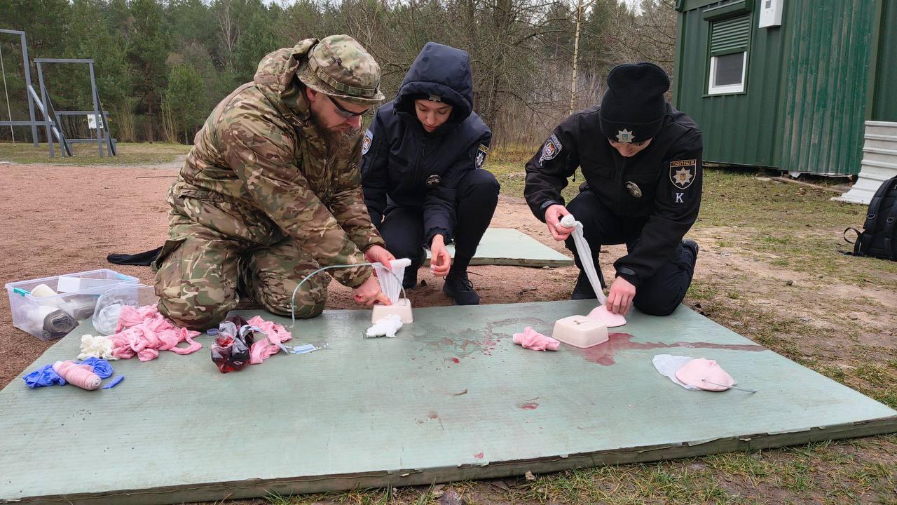 Практичну частину з тактичної медицини провів капітан поліції Дмитро Войнов, інспектор відділу тактико-спеціальної підготовки полку поліції особливого призначення ГУНП у Київській області.