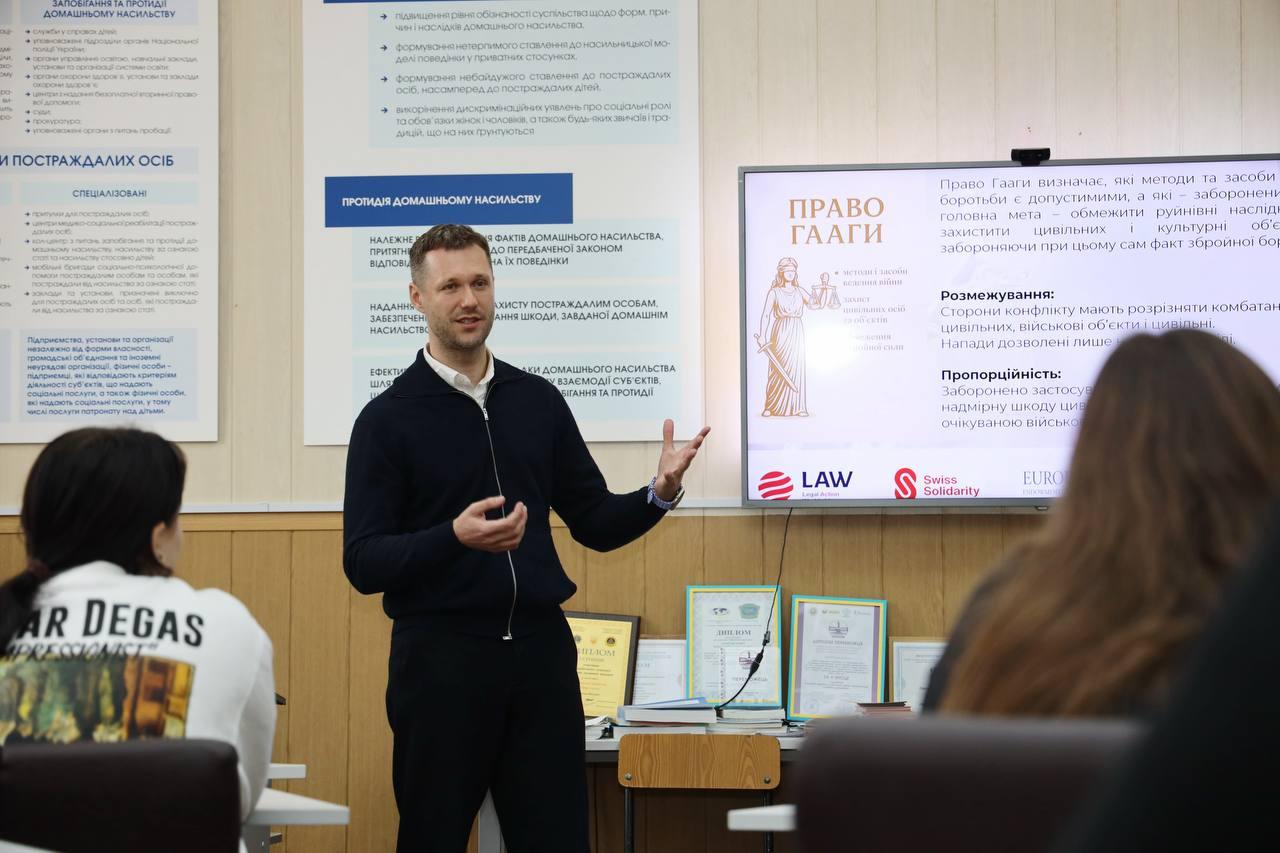 Під час заняття студенти мали змогу ознайомитися з особливостями документування воєнних злочинів, процедурою збирання доказів, фіксації фактів порушень міжнародного гуманітарного права, а також із практичними аспектами кваліфікації таких злочинів відповідно до положень міжнародного та національного кримінального права.