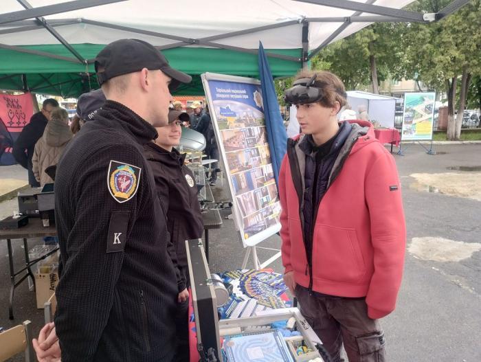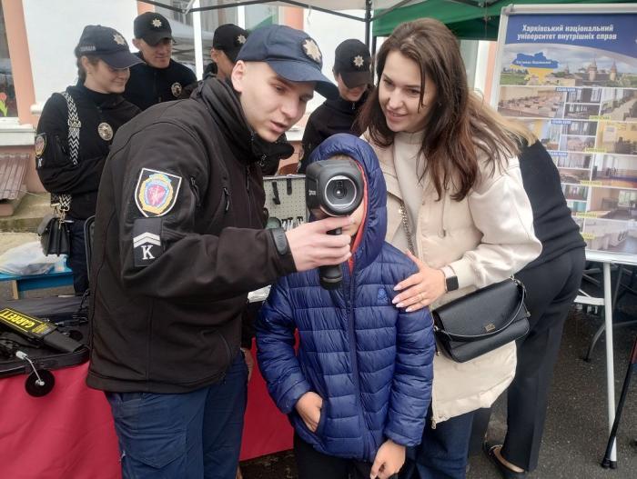 Курсанти представляли експозицію університету, а також провели майстер-клас із дактилоскопії, демонструючи процес зняття відбитків пальців.