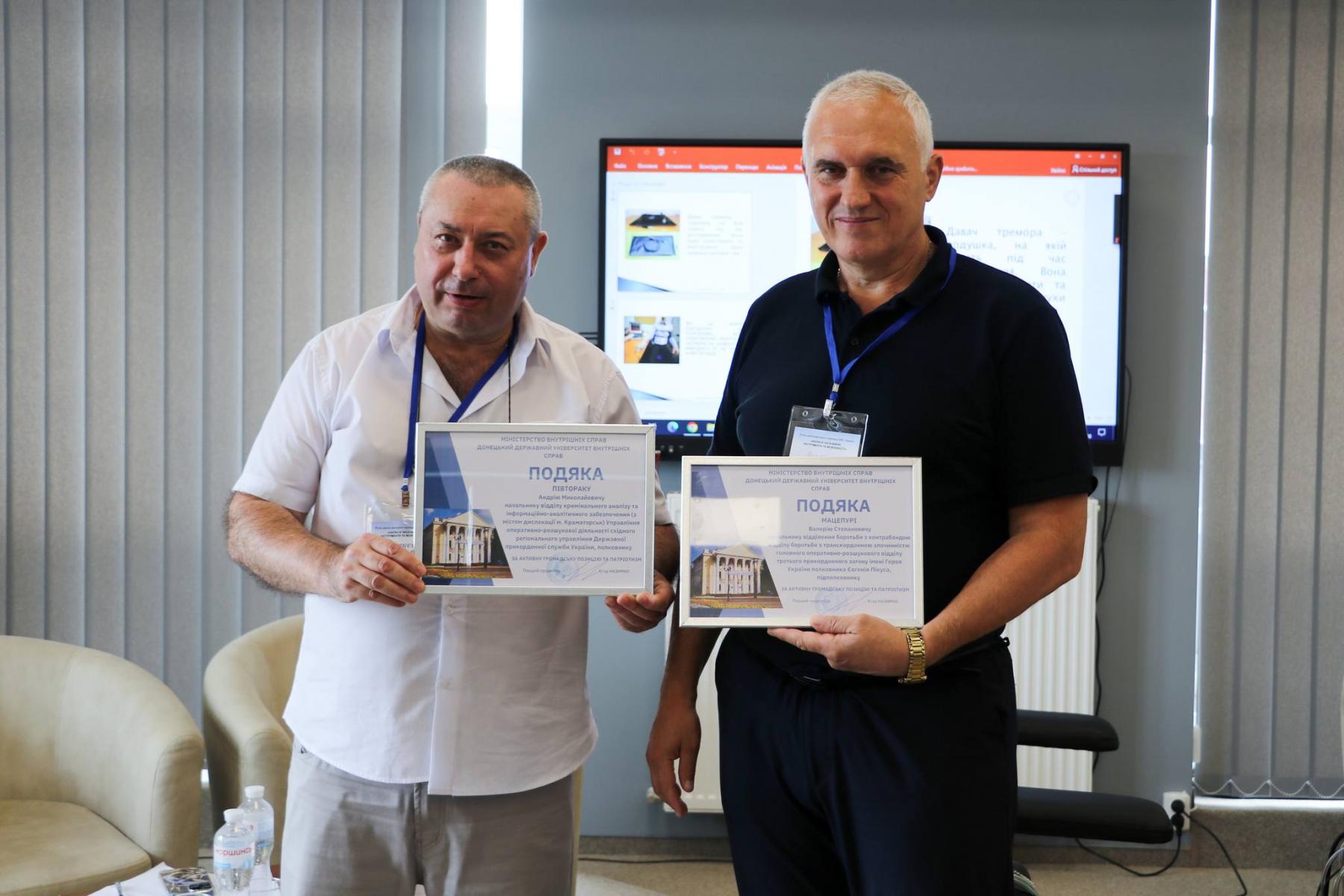 Разом із проректоркою ЛьвДУВС Ольгою Балинською він вручив подяку від керівництва Донецького державного університету внутрішніх справ підполковнику Мацепурі за активну громадську позицію та патріотизм.