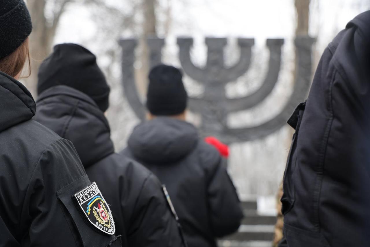 У цей день курсанти Національної академії внутрішніх справ поклали квіти до меморіалу жертвам Голокосту, вшанувавши памʼять загиблих хвилиною мовчання. Цей жест — знак поваги, співчуття й усвідомлення того, що служіння людям починається з людяності.