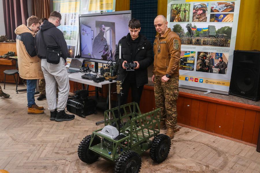 Школярі можуть приміряти військову амуніцію, спробувати себе в роботі з симуляторами БПлА, керувати наземними роботизованими комплексами, а також здійснити віртуальний політ у VR-окулярах на дронах. Такий інтерактивний формат дозволяє підліткам відчути себе частиною сучасного високотехнологічного війська.