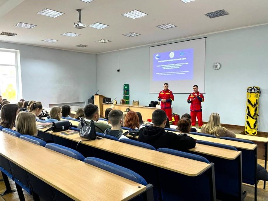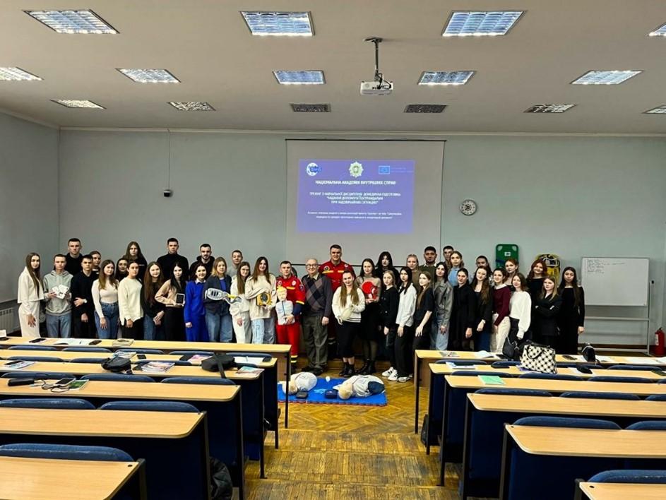 У межах реалізації грантового проєкту Європейського Союзу «Erasmus+» та з метою впровадження європейських стандартів в освітній процес у Національній академії внутрішніх справ стартував тренінг з домедичної підготовки для здобувачів вищої освіти на тему «Cимуляційна медицина і сценарій-орієнтоване навчання з невідкладної допомоги». Захід передбачає вивчення особливостей надання психологічної допомоги постраждалим і членам їх сімей, а також самодопомоги в разі надзвичайних ситуацій.