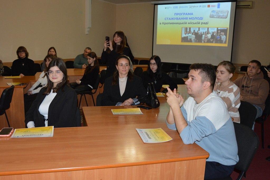 Під час стажування молодь працювала у виконавчих органах Кропивницької міської ради. Стажисти ознайомилися з діяльністю органів місцевого самоврядування, набули практичних компетентностей, удосконалили комунікаційні навички, опанували основи проєктного менеджменту та поглибили розуміння процедур ухвалення рішень на місцевому рівні.
