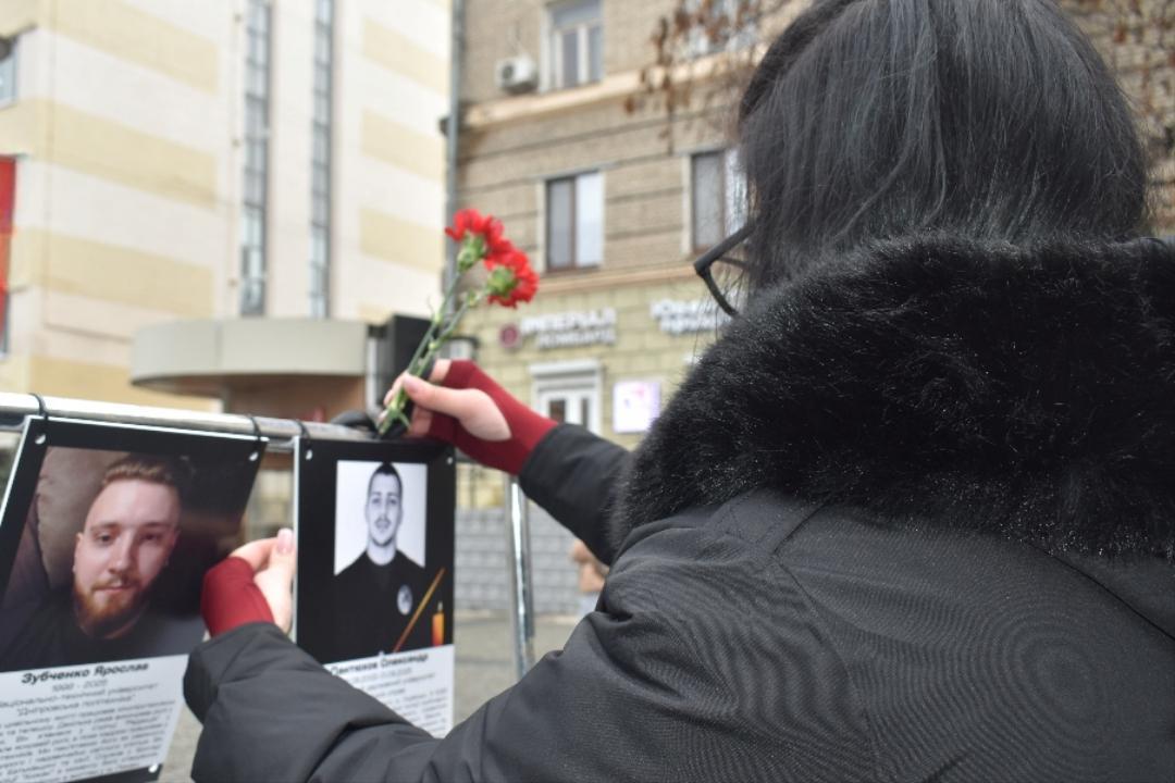 Здобувачі поклали квіти до імпровізованого меморіалу студентам, чиї життя забрала сучасна війна.