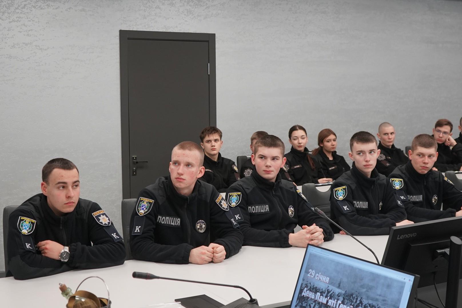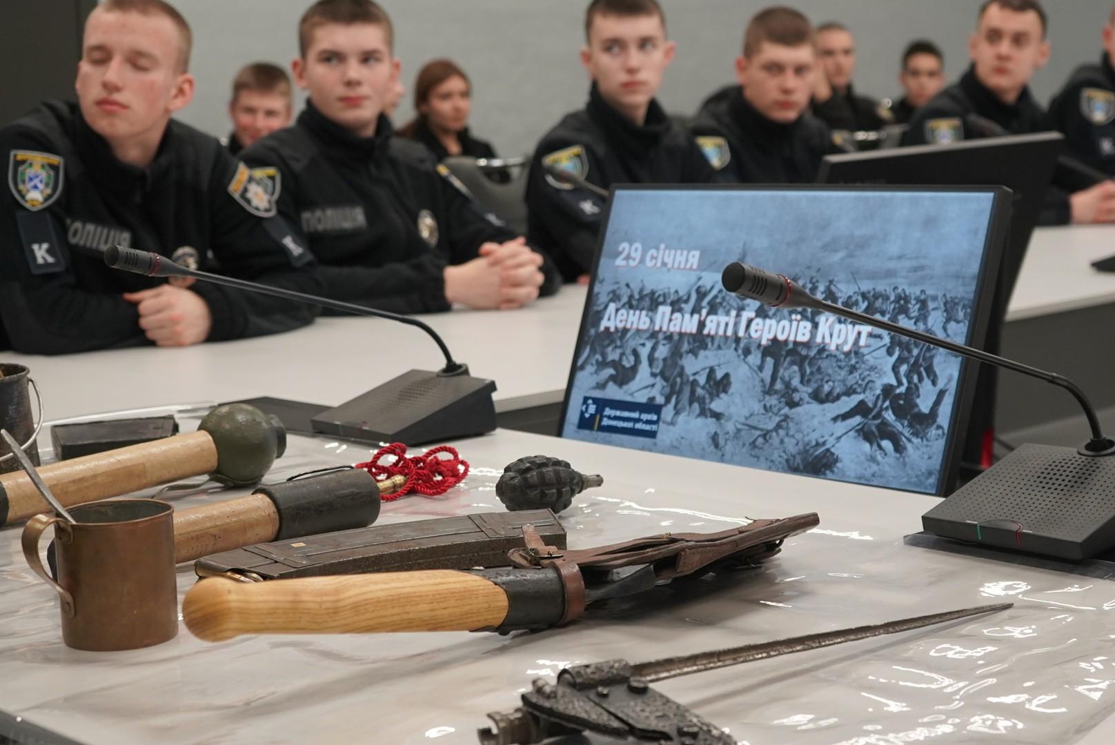 Також у ДДУВС пройшла лекція на тему Бою під Крутами. До заходу долучилися курсанти та вихованці Дніпровського ліцею ім. О. Гостіщева МВС.