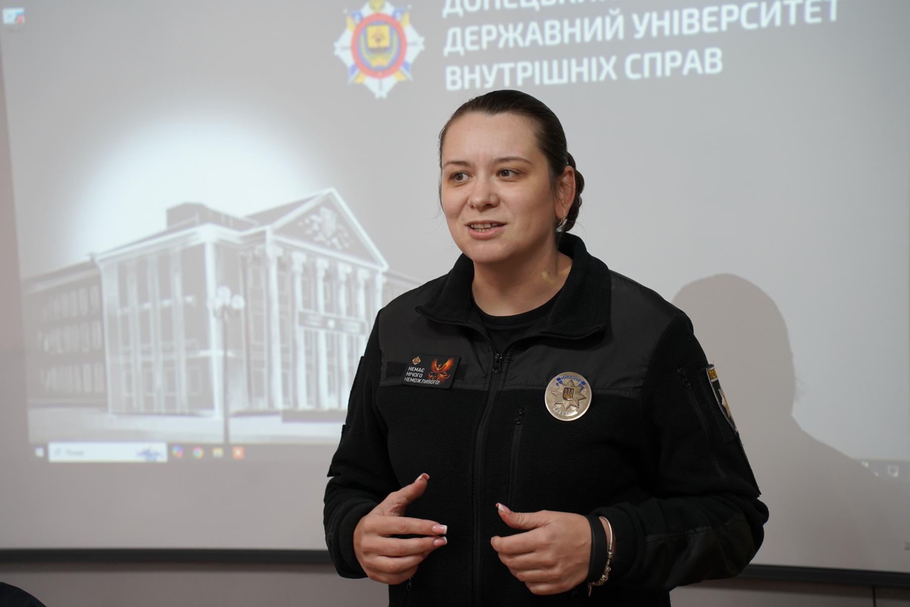 Спікерами виступили начальник відділу організації діяльності підрозділів адміністративної практики Департаменту превентивної діяльності Національної поліції України полковник поліції Андрій Швиденко, його заступник – підполковник поліції В’ячеслав Счастливий, а також завідувач кафедри адміністративно-правових дисциплін ДонДУВС підполковник поліції Ольга Мердова.
