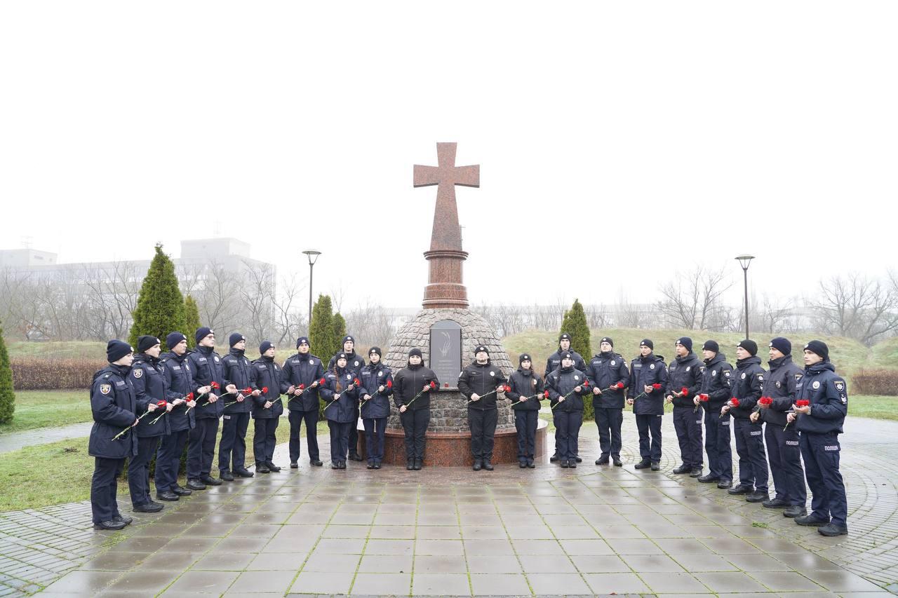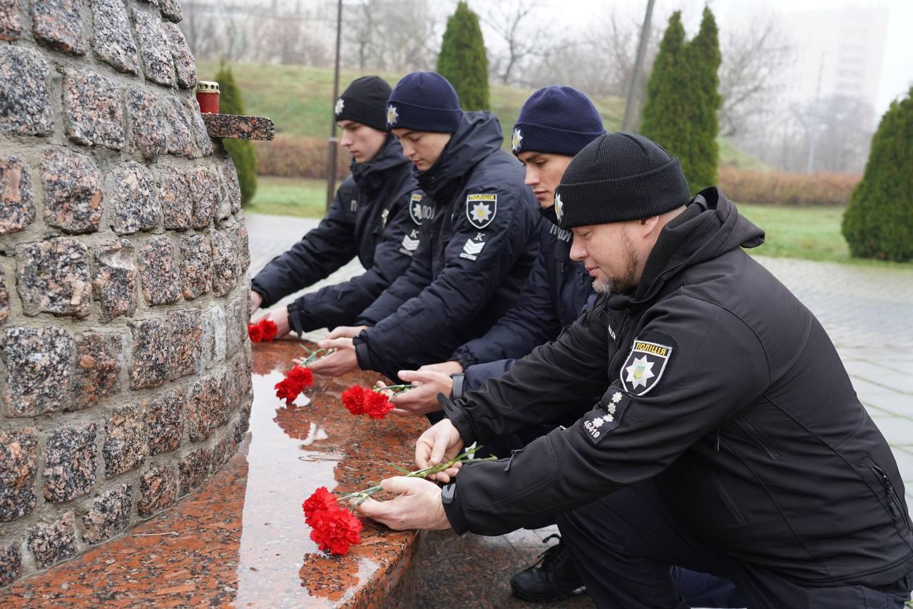 На Меморіальному комплексі «Фортечні вали» курсанти та курсантки поклали квіти до пам’ятного знака та вшанували мільйони безвинно знищених життів хвилиною мовчання.