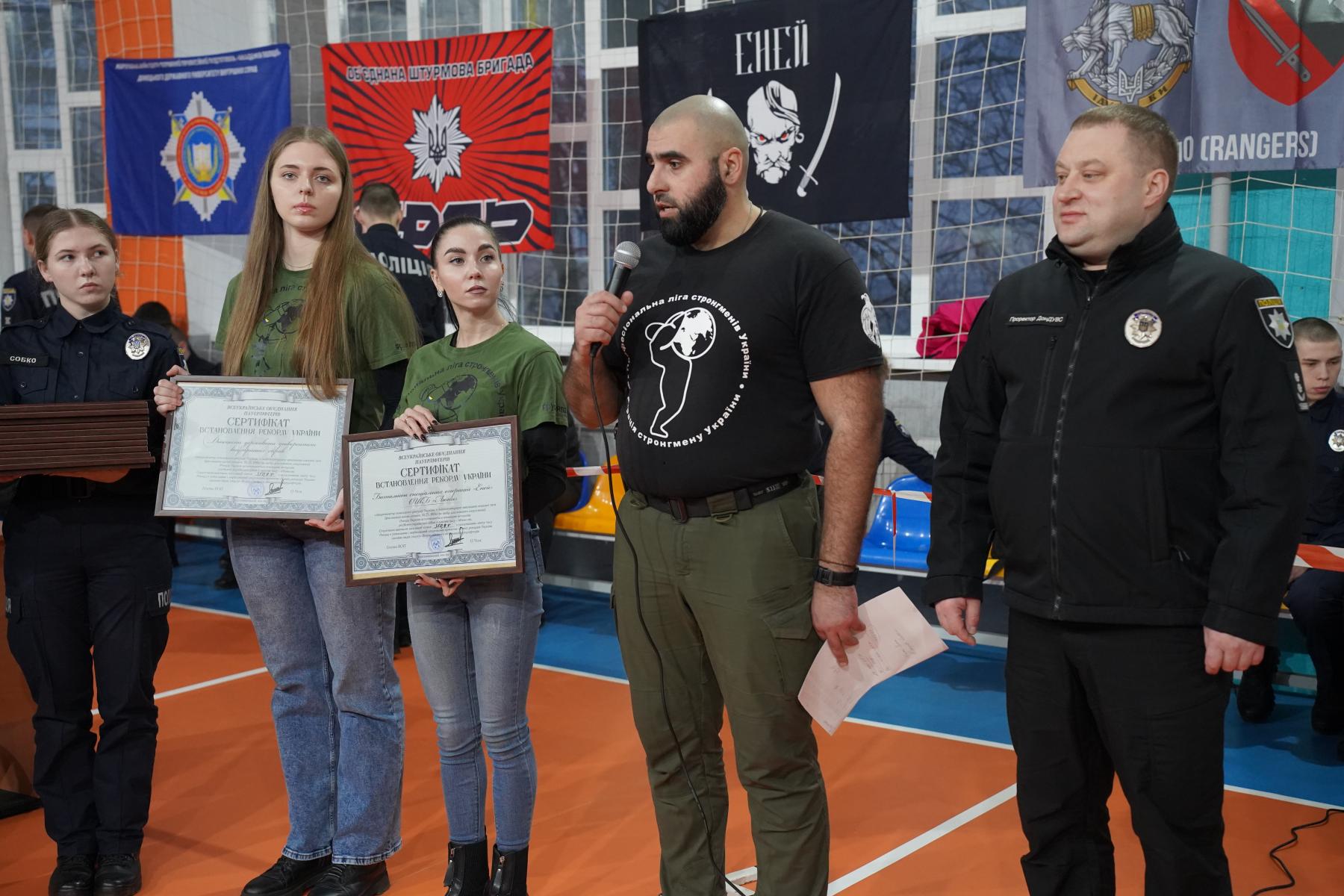 Донецький державний університет внутрішніх справ спільно з Федерацією стронгмену України, батальйоном спеціальних операцій «Еней» бригади Національної поліції «Лють» виступили співорганізаторами командного рекорду України з багатоповторного виконання станової тяги (фіксованою вагою штанги 50, 75, 100 кг на вибір для кожного спортсмена) з лімітом часу 60 хвилин.