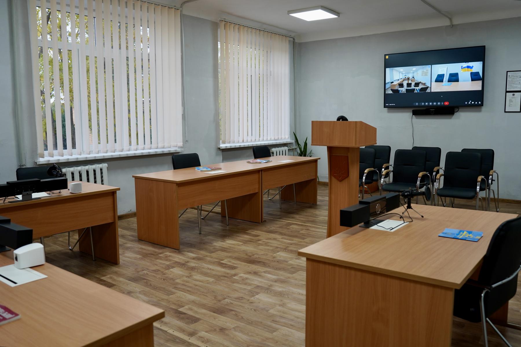 Інтерактивний простір оснащений сучасним обладнанням, яке передали університету представники КМЄС. Тут здобувачі та здобувачки вищої освіти моделюватимуть судові процеси, відпрацьовуватимуть ролі суддів, адвокатів, прокурорів, свідків, а також опанують навички складання процесуальних документів та ведення судових дебатів.