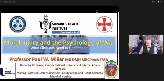 Особливий інтерес викликав виступ почесного професора кафедри соціології та психології ХНУВС Пола Міллера (Paul Miller) – міжнародно визнаного фахівця у сфері психіатрії та травматерапії, який порушив надзвичайно важливу тему морального ушкодження та психології війни. Доповідь була присвячена осмисленню складних моральних травм, яких зазнають військовослужбовці та інші учасники бойових дій, і окреслила ті аспекти, які сьогодні мають принципове значення для клініцистів, психологів та фахівців системи психологічної допомоги.
