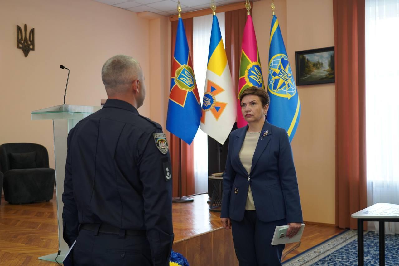 Державний секретар МВС Інна Ящук вручила відзнаки командувача Національної гвардії України ветеранам Івану Артюху, Віталію Оніховському та Радиславу Фильку.
