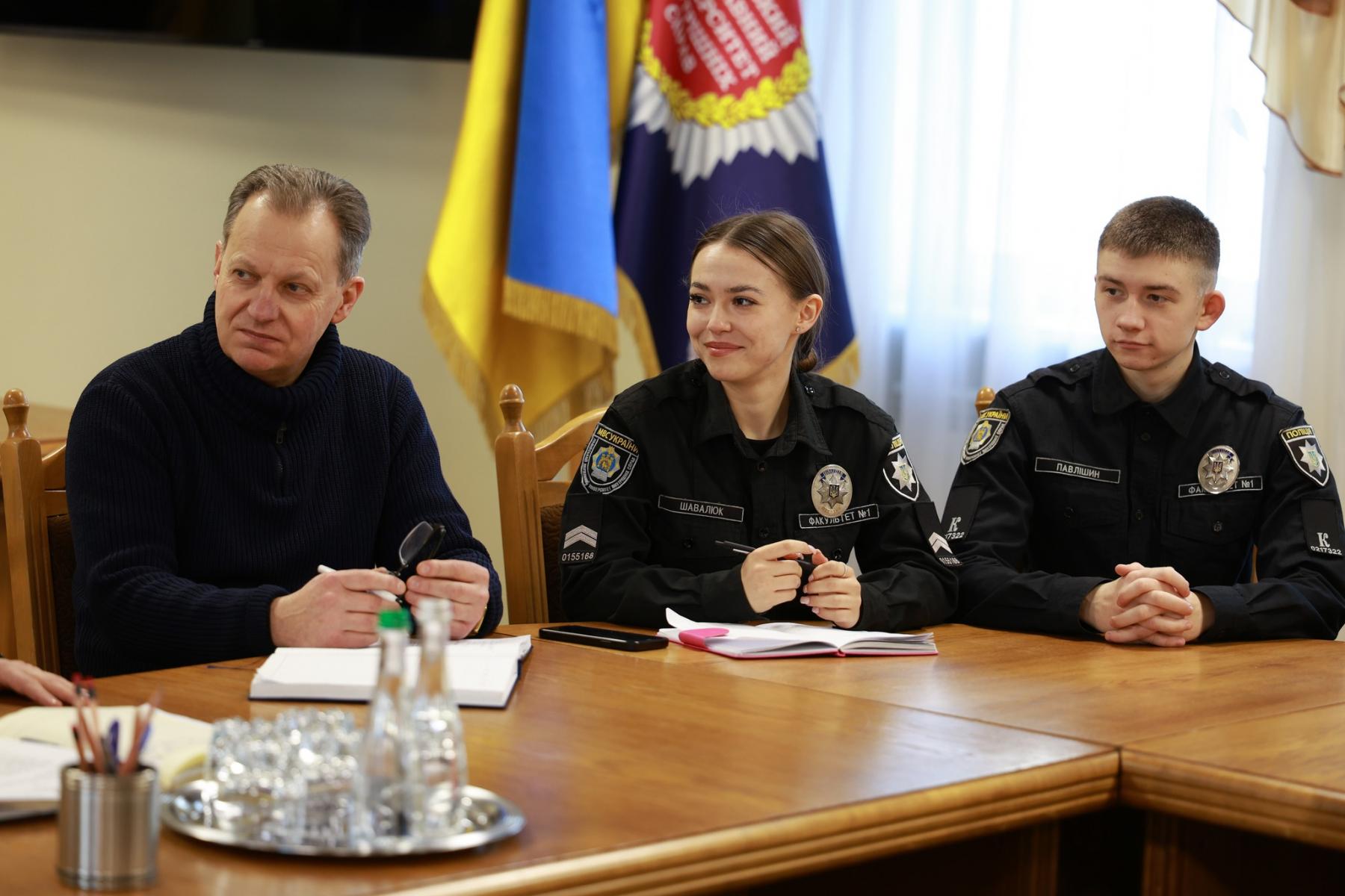 Очільник Львівського державного університету внутрішніх справ полковник поліції Дмитро Швець та перший проректор вишу Руслан Строцький поспілкувалися із представниками Ради курсантсько-студентського самоврядування.