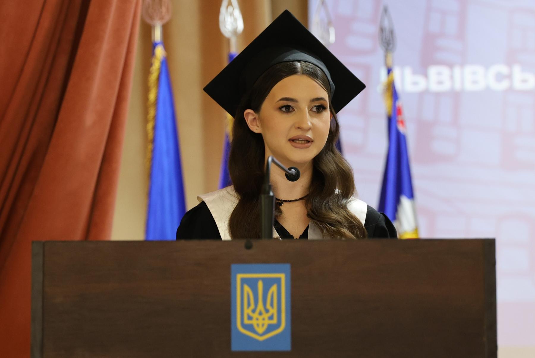 «Роки навчання в університеті промайнули, мов одна мить, але ця мить залишила глибокий слід у серці. Так, були труднощі й виклики, але кожен день був наповнений змістом, цікавими відкриттями й важливим досвідом. Це був не просто етап здобуття знань – це був потужний старт, який зробив нас дорослішими не лише як студентів, а й як особистостей. Для мене роль старости та голови Ради студентського самоврядування стала справжнім викликом. Цей досвід назавжди залишиться в моєму серці як один із найважливіших у житті. Наш інститут подарував кожному з нас неймовірні можливості, віру в себе і, найцінніше – вірних людей поруч. І хоча прощатися зі стінами університету буде нелегко, ми йдемо далі з розумінням, що він назавжди залишиться частиною нас», – сказала Ольга Бауер.