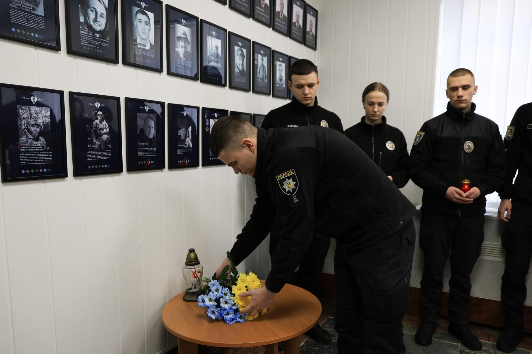 Вихованці вишу поклали квіти та запалили лампадки до «Місця шани та вдячності» у фоє Центру дозвілля.