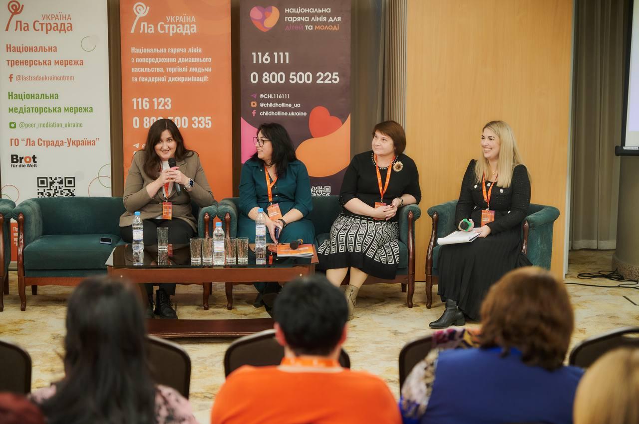 До конференції долучилися Урядова уповноважена з гендерної політики, представники та представниці Міністерства освіти і науки України, Служби освітньої безпеки Національної поліції України, Національної тренерської та медіаторської мереж ГО «Ла Страда-Україна» тощо.
