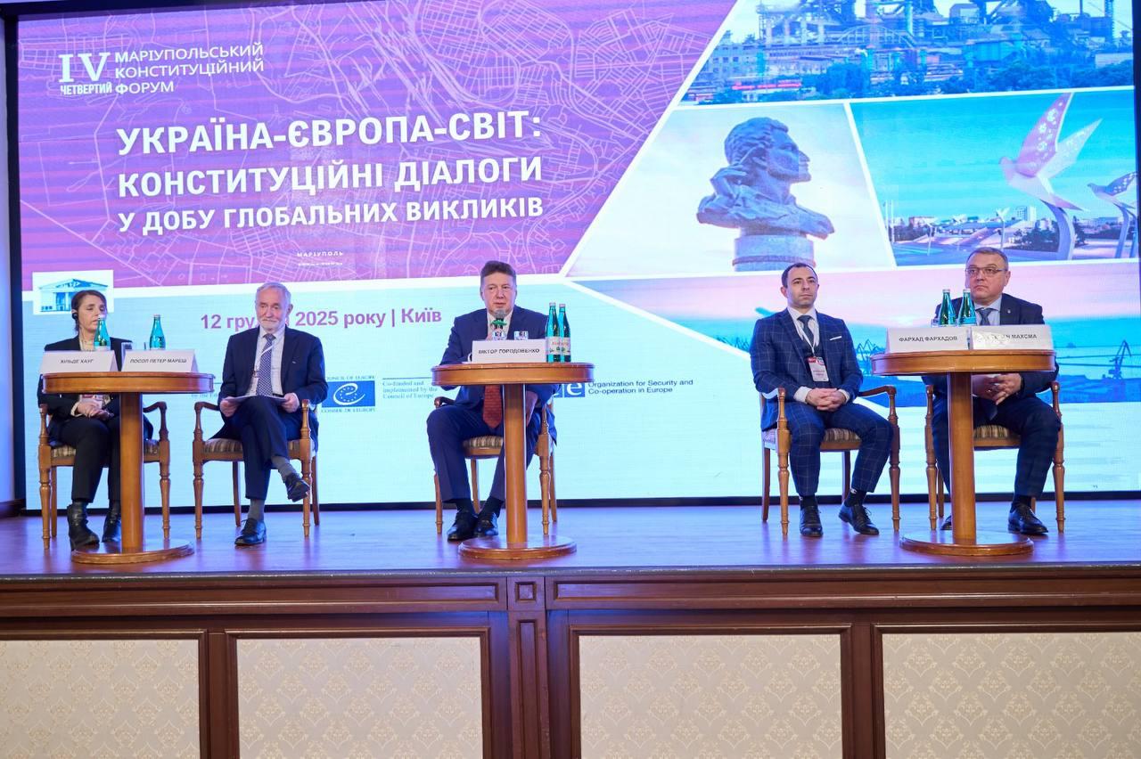 12 грудня відбувся IV Маріупольський конституційний форум «Україна – Європа – Світ: конституційні діалоги у добу глобальних викликів», який став авторитетним професійним майданчиком для обговорення актуальних питань розвитку конституціоналізму в умовах війни та глобальних трансформацій України. Захід об’єднав суддів Конституційного Суду України, представників органів державної влади, міжнародних організацій, а також провідних науковців.