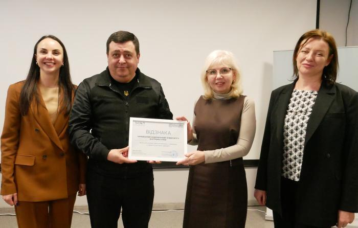 Під час заходу заступник начальника Вінницької ОВА з питань цифрового розвитку, цифрових трансформацій і цифровізації Андрій Кавунець вручив представницям університету почесну відзнаку за результативну міжсекторальну співпрацю у сфері психічного здоров’я..jpg)