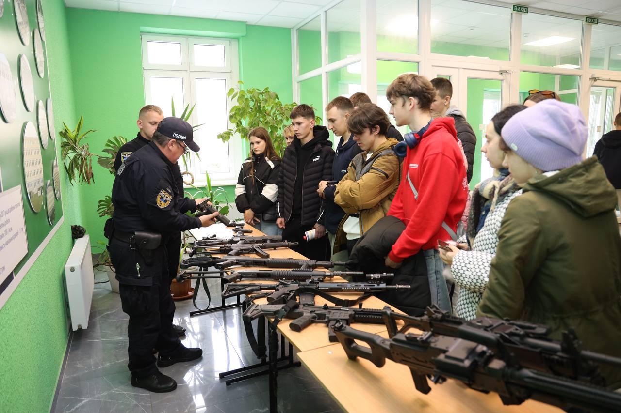 Після офіційної частини школярів ознайомили з навчальними полігонами університету, продемонстрували спеціальну техніку, зброю та спорядження поліцейських.