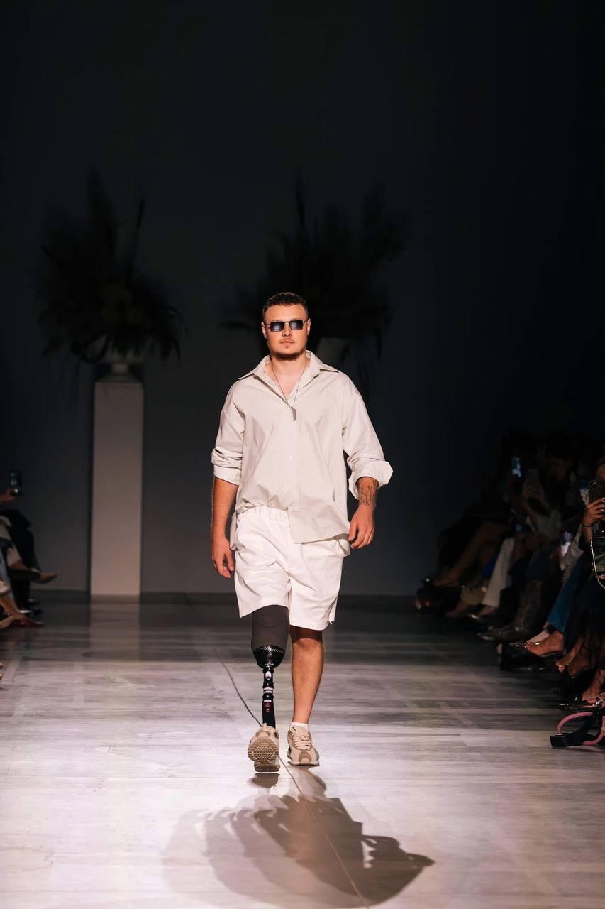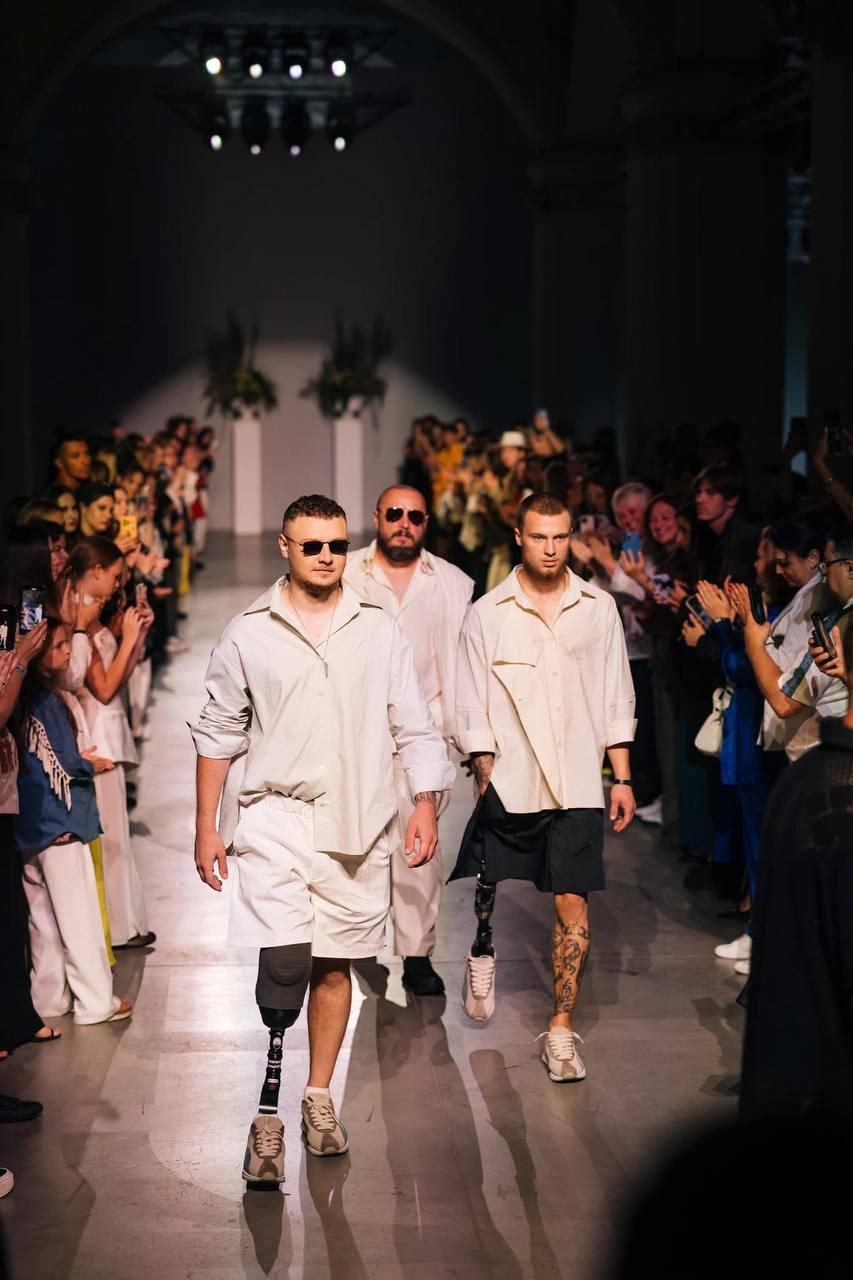 Крім нього, у показі колекції взяли участь ще кілька ветеранів, які втратили в боях кінцівки. «Війна занурила нас у реальність, де адаптивний одяг — не тренд, а необхідність. Ми живемо в країні, де інклюзивність — не виняток, а відповідальність. Це наша нова норма», — вважають засновники Ukrainian Fashion Week.