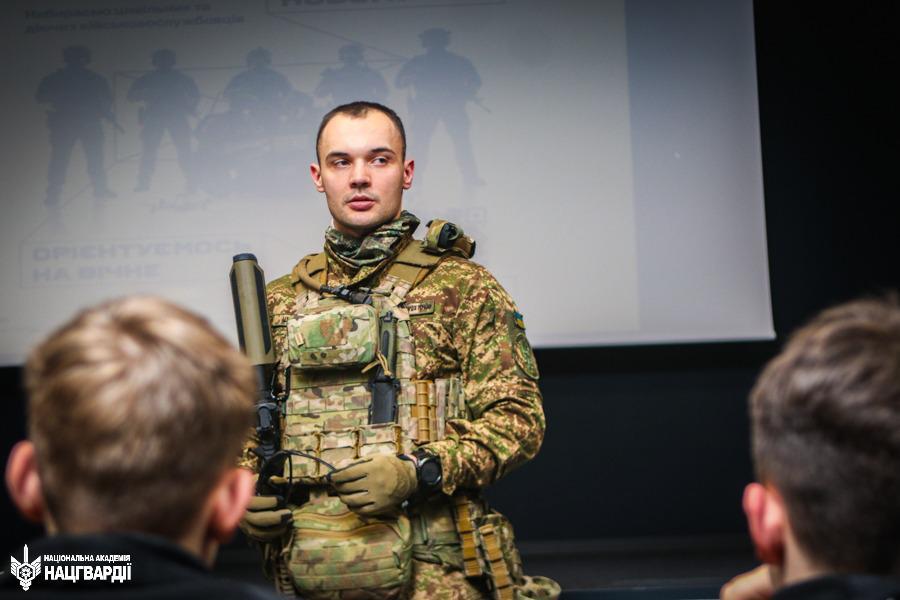 Представники Національної академії Національної гвардії України проводять зустрічі з ліцеїстами, розповідаючи про Академію, її структуру та особливості підготовки майбутніх офіцерів.