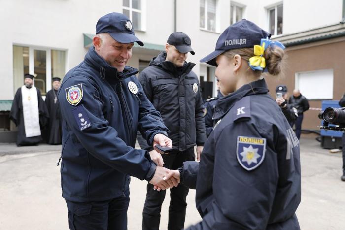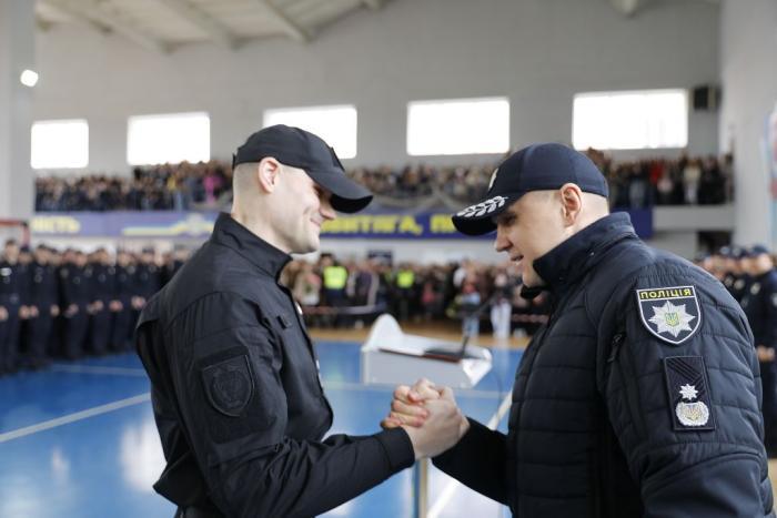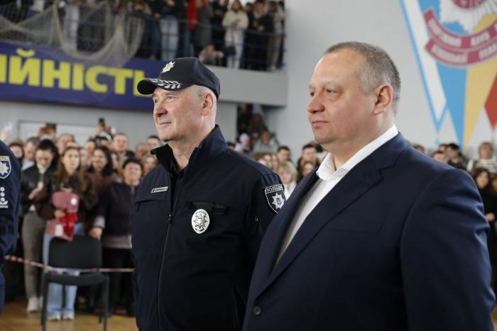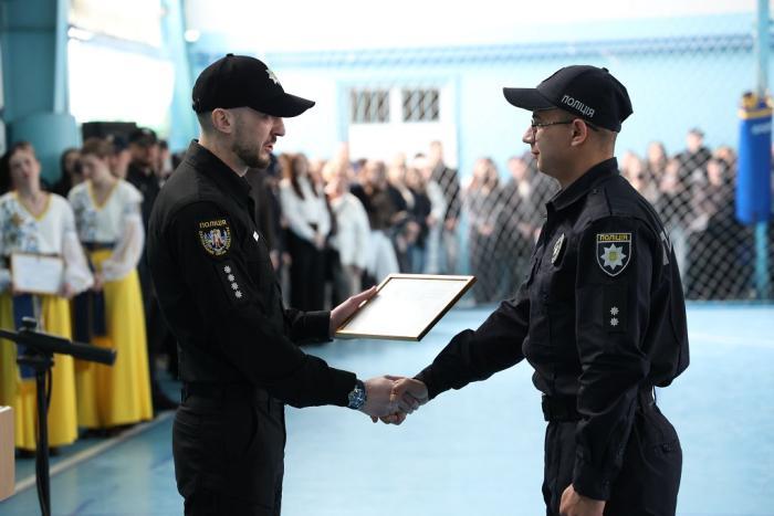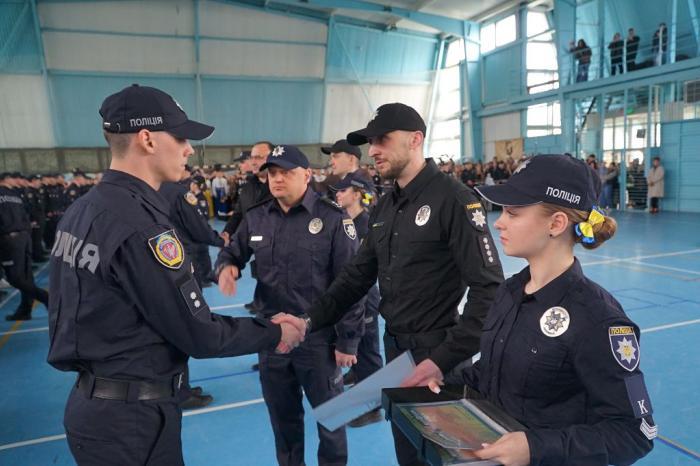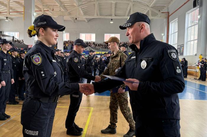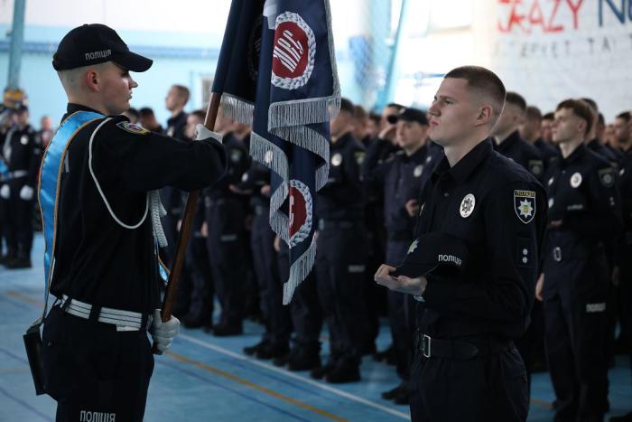 Молодих правоохоронців також привітали ректор університету, генерал поліції третього рангу Валерій Сокуренко, проректори, директори навчально-наукових інститутів і курсові офіцери.