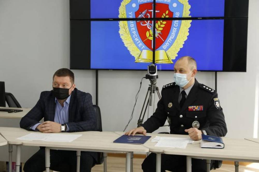 З іноземною делегацією зустрілися перший проректор вишу полковник поліції Дмитро Швець та проректор Леонід Могілевський. Під час зустрічі гостей ознайомили з історією університету, напрямами підготовки, науковою та освітньою діяльністю Харківського національного університету внутрішніх справ.