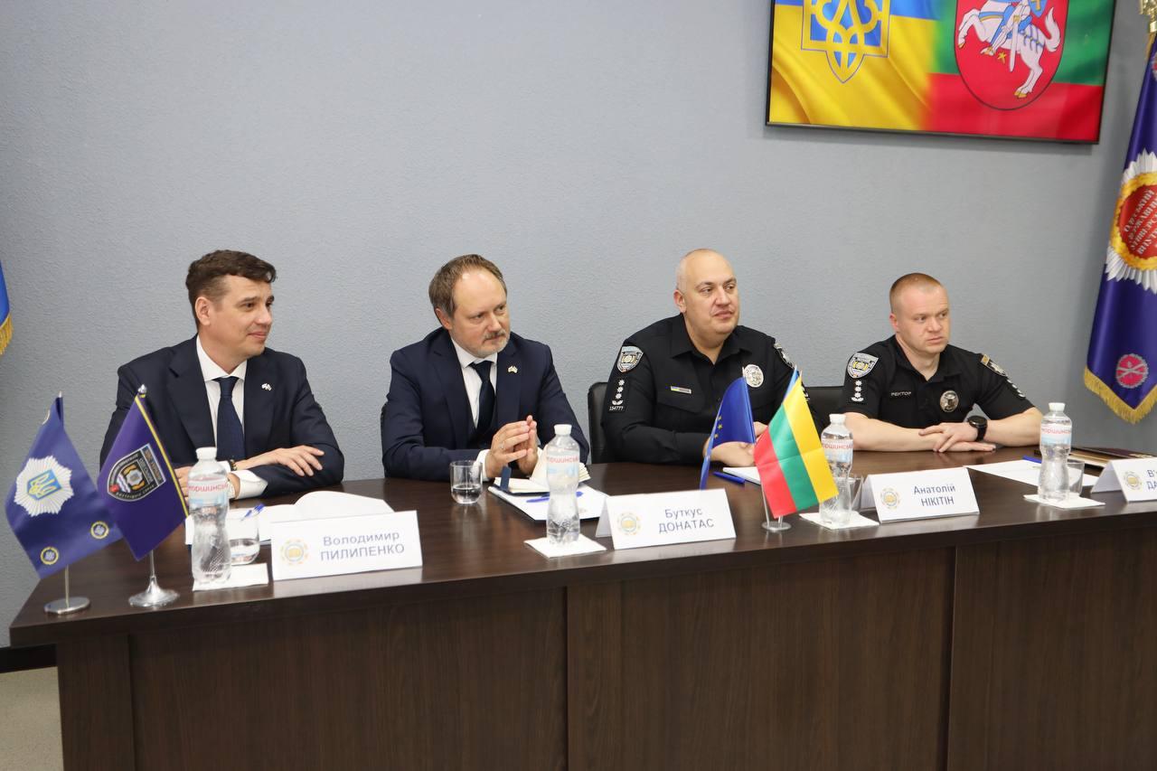 У межах офіційного візиту почесні гості провели зустріч з курсантами факультету підготовки фахівців для органів досудового розслідування НПУ. Пан Буткус виступив із лекцією, присвяченою міжнародному співробітництву, викликам сучасності у сфері безпеки та ролі молоді у формуванні правової держави.