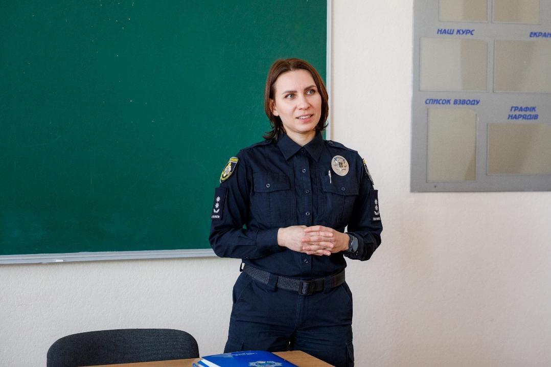 Зі слухачами зустрілася начальниця сектора освітньої безпеки Головного управління Національної поліції у Дніпропетровській області, підполковниця поліції Олена Ткачова.