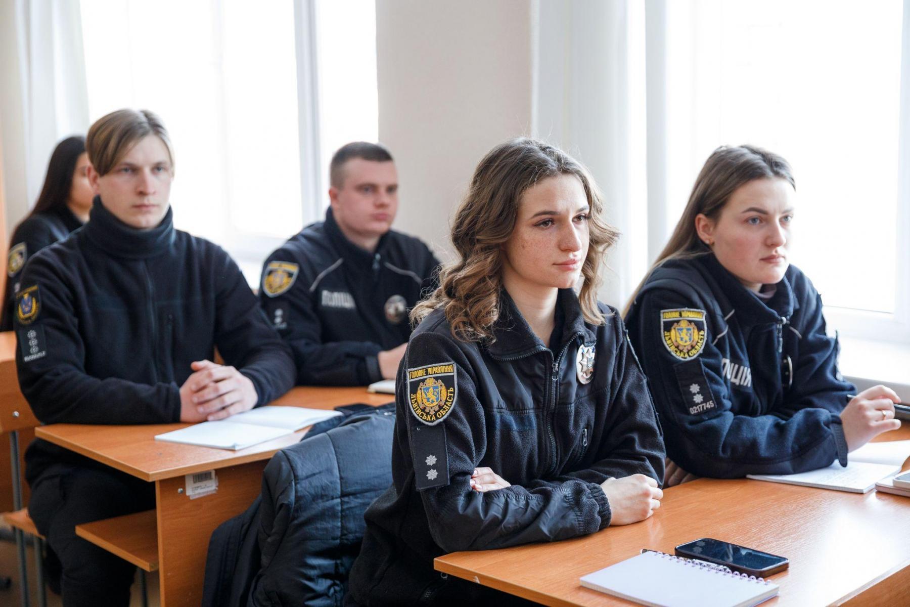 Участь у занятті взяли дільничні офіцери поліції з Дніпропетровської, Івано-Франківської, Львівської, Херсонської, а також Хмельницької областей, які проходять спеціалізацію на базі відділення організації підвищення кваліфікації та спеціалізації Інституту післядипломної освіти та заочного навчання ДДУВС.