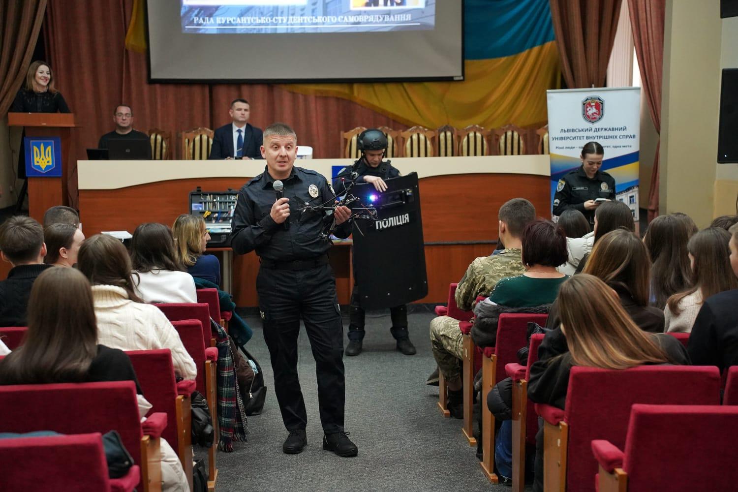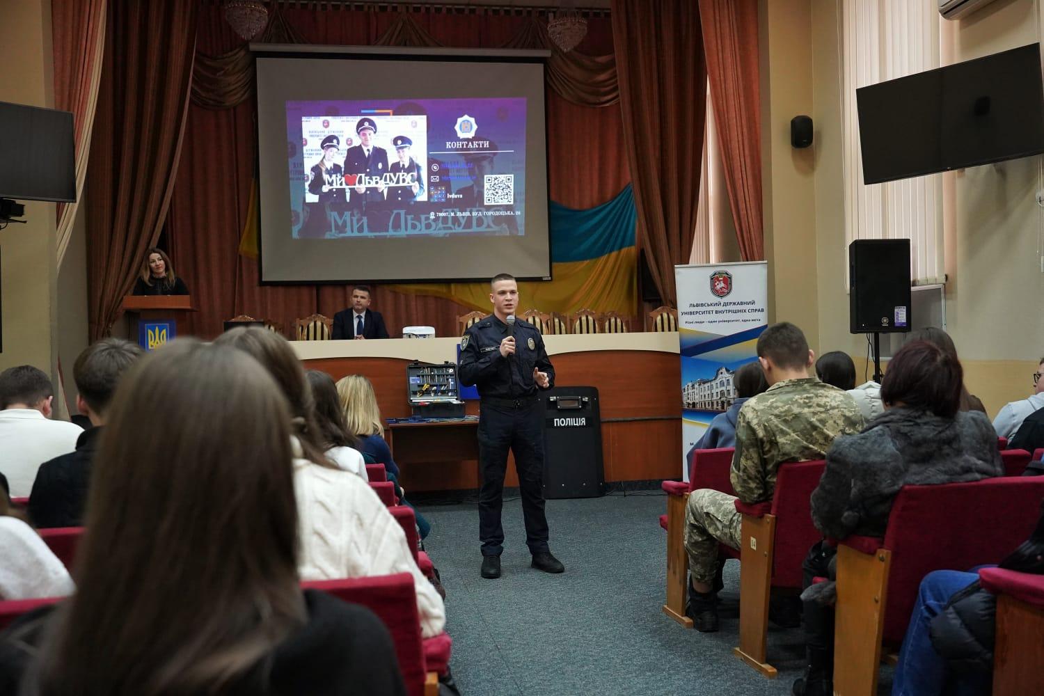 Заступник декана факультету №2 Степан Мельник ознайомив присутніх із освітніми програмами, які можна обрати у ЛьвДУВС, а також наголосив на особливостях вступу на навчання за державним замовленням.
