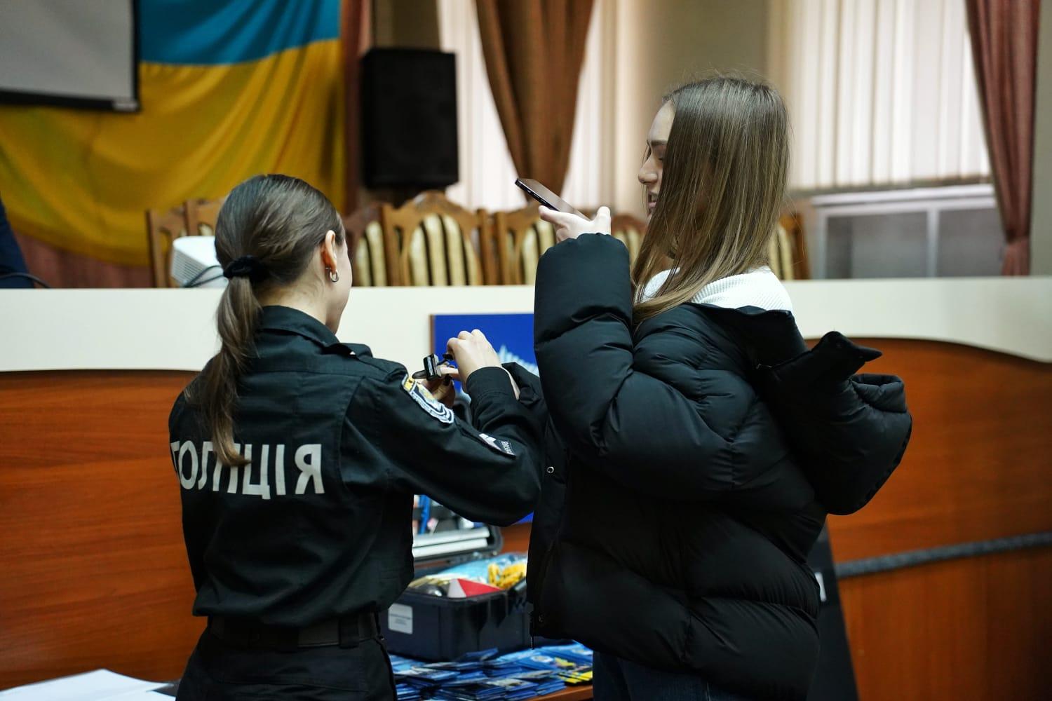 Старшокласники також мали змогу дізнатися більше про професію поліцейського. Зокрема ознайомитися із вмістом валізи криміналіста та побачити, як відбувається зняття відбитків пальців рук.