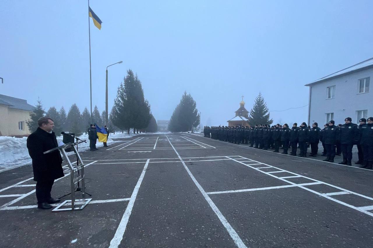 Під час його виступу працівники та здобувачі освіти ЛьвДУВС утворили «живий ланцюг єдності» на честь державного свята.