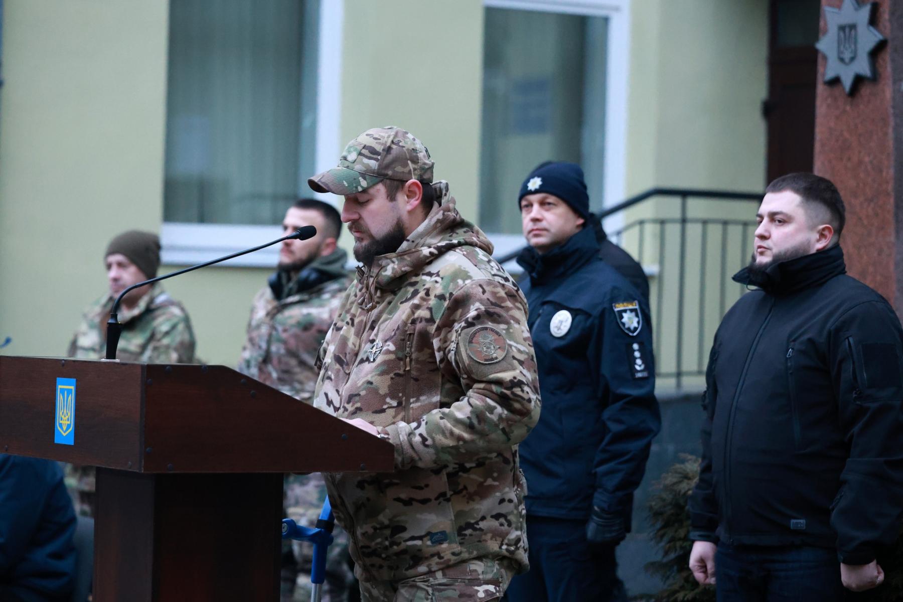 Натхненні слова вітань з нагоди Дня Соборності виголосив і ветеран російсько-української війни, старший солдат 4-ї бригади оперативного призначення імені Героя України сержанта Сергія Михальчука Національної гвардії України Антон Семенюк.